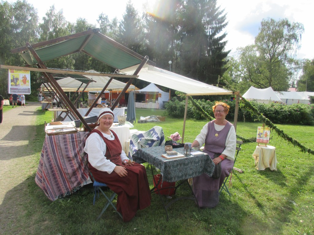Meillä Paperihuone ry:n graafikoilla on ollut ilo osallistua jo neljänä kesänä Hämeen keskiaikamarkkinoille. Olemme esitelleet työnäytöksissä grafiikan menetelmiä. Olemme kaivertaneet puuta ja hioneet litografiakiviä. Olemme tehneet keskiaikahenkeen sopivia paperinukkeja linnanneidoista ritareihin asti. Ompelutaitoinen graafikkosisko Lissu valmisti meille upeat keskiaikapuvut. Minun bravuurini on ollut toimia ennustajaeukkona. Lupaan vain hyviä tarotennustuksia. Se on toteutunut kaikille muille paitsi Ullalle, joka nosti pakasta pelkästään tummia kortteja. Se pelästytti. Kortit tietävät.
