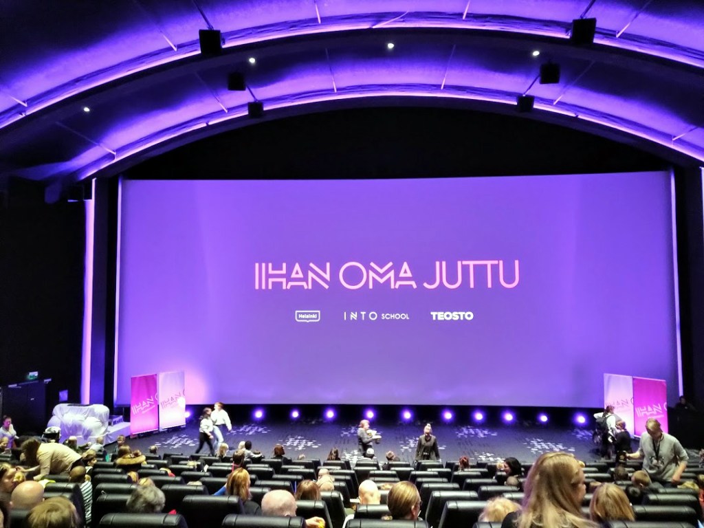 Matkustin keskiviikkoaamuna paikkurilla Helsinkiin. Tapasin Annan asemalla. Hän otti surutta vapaapäivän koulusta. Se oli suunniteltu juttu, sillä Samun esikouluryhmä osallistui elokuvatapahtumaan. ”Ihan oma juttu” projektin lyhytkuvat esitettiin komeasti Tennispalatsissa. Taputimme kätemme kipeiksi lasten omatekoisille kunnianhimoisille tarinoille.