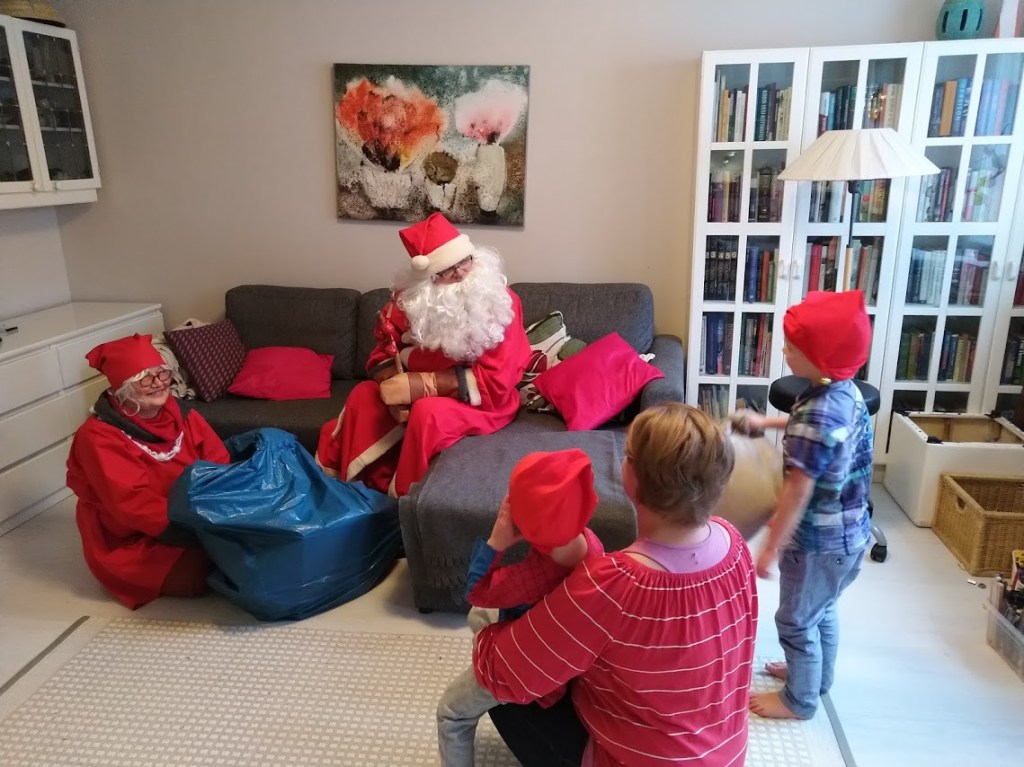 Meillä Samu ja Miska ovat jo täpinässä. ”Tulisiko meille tänä vuonna joulupukki?” Anna kyseli puhelimessa. No totta kai meille tulee joulupukki!