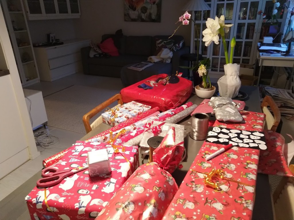 Minulla oli eilen lahjojen paketointipäivä. Aloitin jo aamulla ennen jouluvieraiden tuloa.