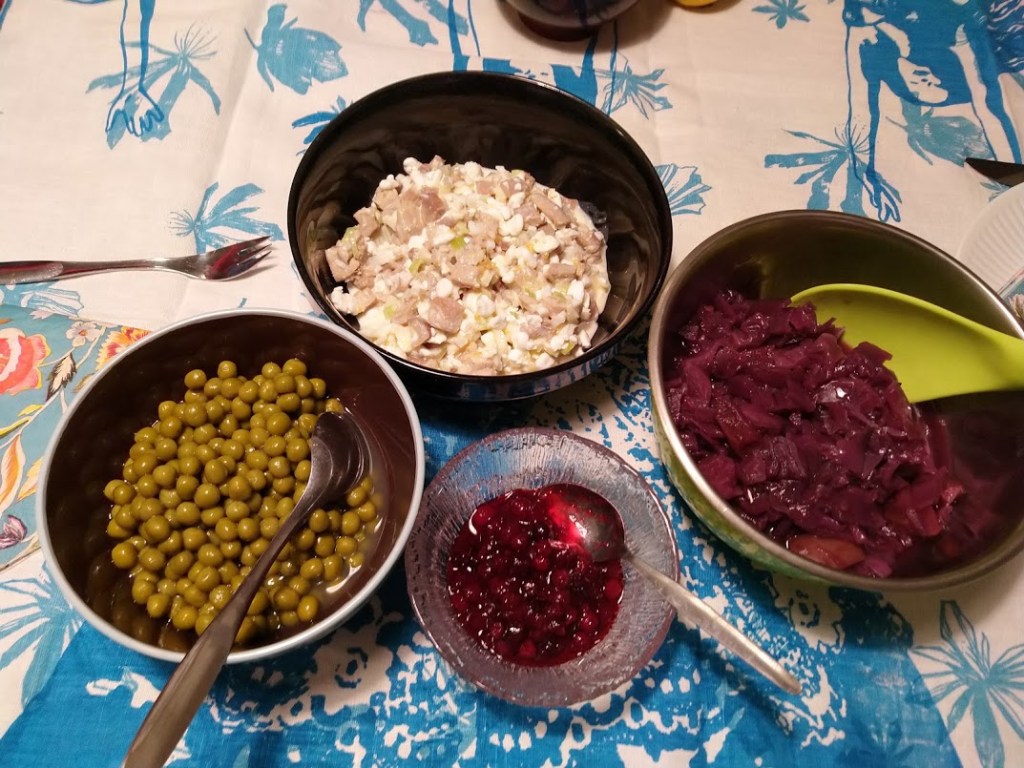Haudutettu punakaali kuuluu jouluun. Vaikka se on hyvää, sitä ei tule kokattua muulloin kuin jouluaterialle. Anna ja minä pidämme purkkiherneistä. Nekin kuuluvat vain jouluun.