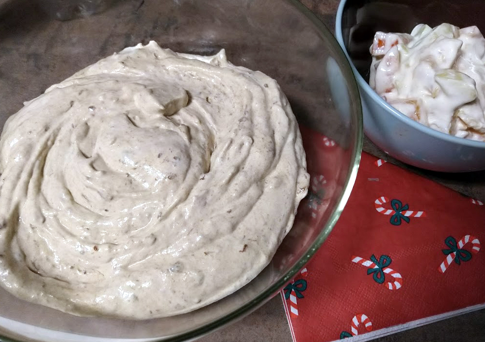Myös sienisalaatti on omatekoista. Se syntyy Suvelan karvalaukuista, sipulista, smetanasta, keitetyistä kananmunista ja raejuustosta. Espoon kodissamme meillä oli oikea leivinuuni. Valmistimme siinä aina jouluisin täytettyä kalkkunaa.