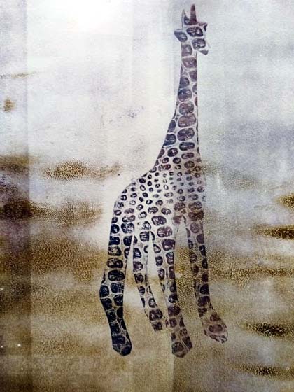Oli ihan pakko kokeilla, miten viidakon eläimet toimivat grafiikkamenetelmällä. Olin iloisesti yllättynyt, että yksinkertaiset kirahvit heräsivät väriä telaamalla henkiin. Mitä vielä ehdinkään tehdä kun aikaa on runsaat puoli vuotta!