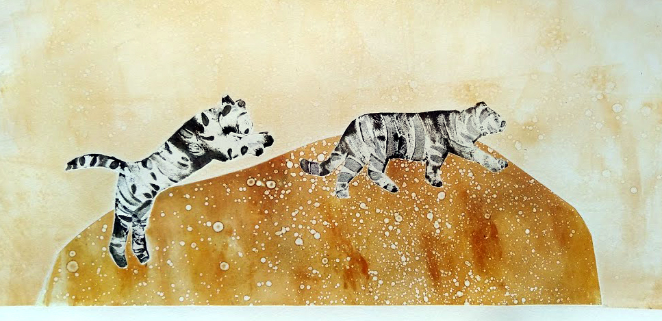 Sitä taitaa olla vähän hullu, kun askartelee pellinpalasista villieläimiä. Toisaalta on kiehtovaa nähdä, miten ne toimivat. Eilen syntyi kolme tiikeriä ja kaksi elefanttia. Aamulla poltteli päästä kokeilemaan niitä grafiikanpajalle.