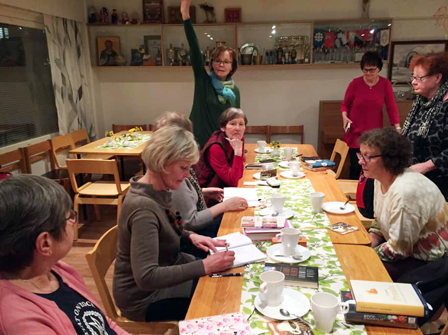 Talvi jatkuu. Lunta on pyryttänyt lähes joka päivä. Vielä ei ole ollut liukasta – onneksi, mutta nekin kelit tulevat. Reippailin eilen opistolla maalauskurssilla. Lähdin sieltä suoraan Linnan marttojen lukupiiriin. Se oli minulle uusi kokemus. Meitä ensikertalaisia oli muitakin, joten sulauduin mukavasti joukkoon.