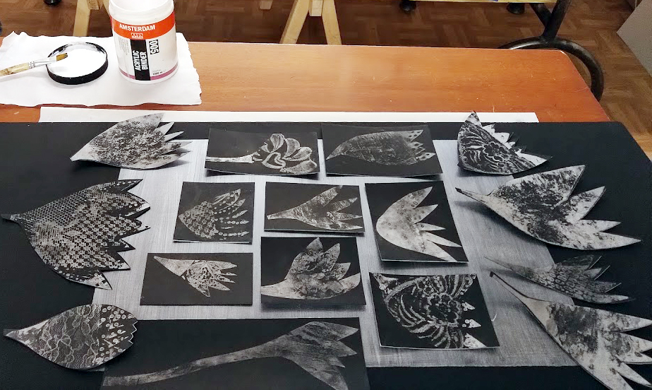 Tekeillä on kolme suurta kukkapylvästä. Siis triptyykki. Ennakoin tulevaa lomaa. Meillä pitäisi olla heti huhtikuussa jotain valmista tai ainakin hyvä suunnitelma esittää praktikum kakkosen seminaarissa.