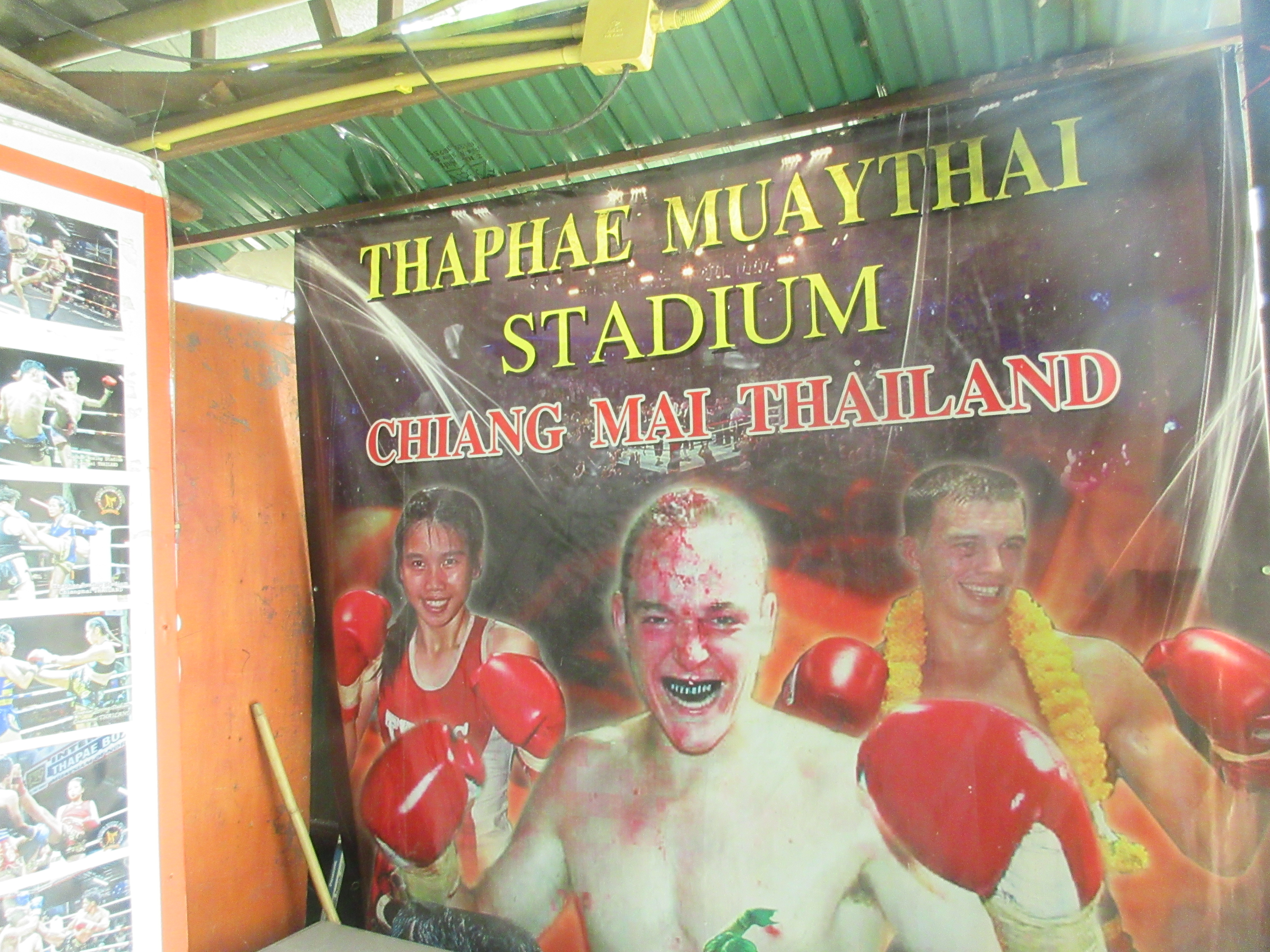 Toinen oli thaiboxing. Lähetin Jussin ihan yksikseen esitykseen, sillä en halunnut nähdä, miten miehet – tai naiset – potkivat toisiaan. Kävimme yhdessä päivällä katsomassa kehän. Jussi sai 500 bahtilla kelpo paikan.