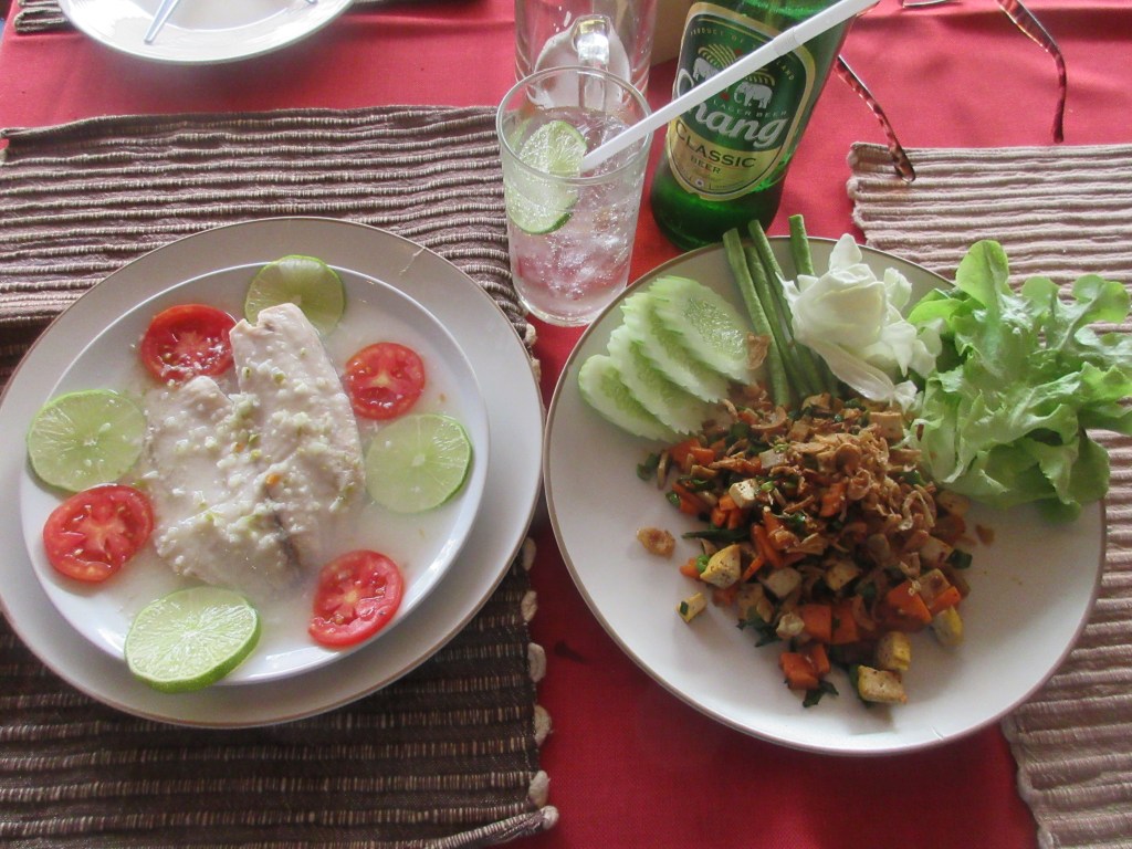 Suosimme ruokapaikkoja, joissa olemme saaneet tavallista parempaa ruokaa. Pohjois-Thaimaan keittiöön erikoistunut Ratana’s Kitchen on yksi niistä. Se on mukavan lähellä uutta hotelliamme. Höyrytetty lime-valkosipulimaustettu kala sekä chilinen korianteri-basilika-tofu olivat suussasulavia.