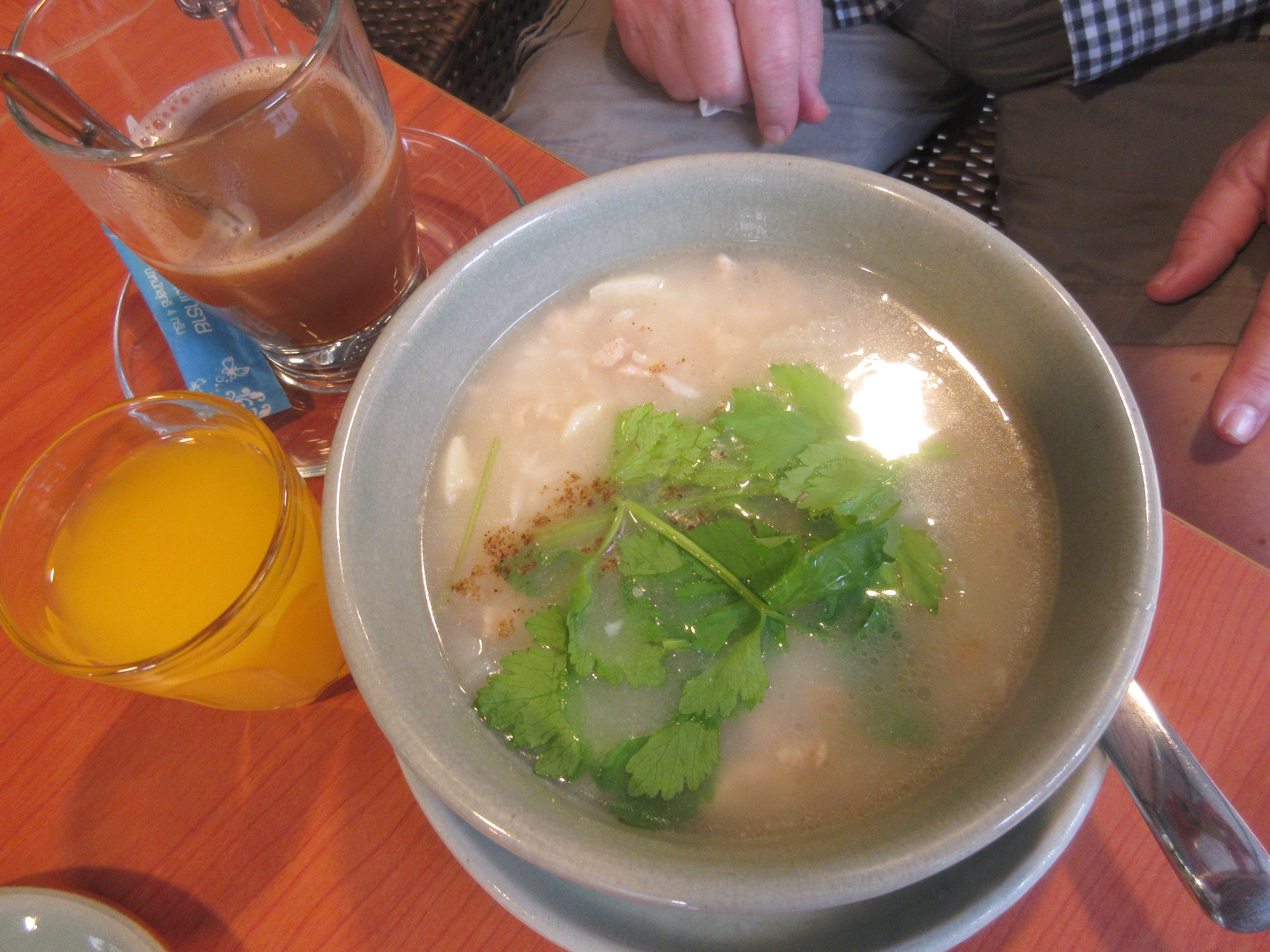 Jussi ilahtui, kun näki Set D:ssä tekstin rice porrige eli riisipuuroa. Tiesimme jo kokemuksesta, ettei se ole puuroa ollenkaan vaan kanaliemeen keitettyä riisikeittoa thaimaustein. Maittavaa kylläkin.