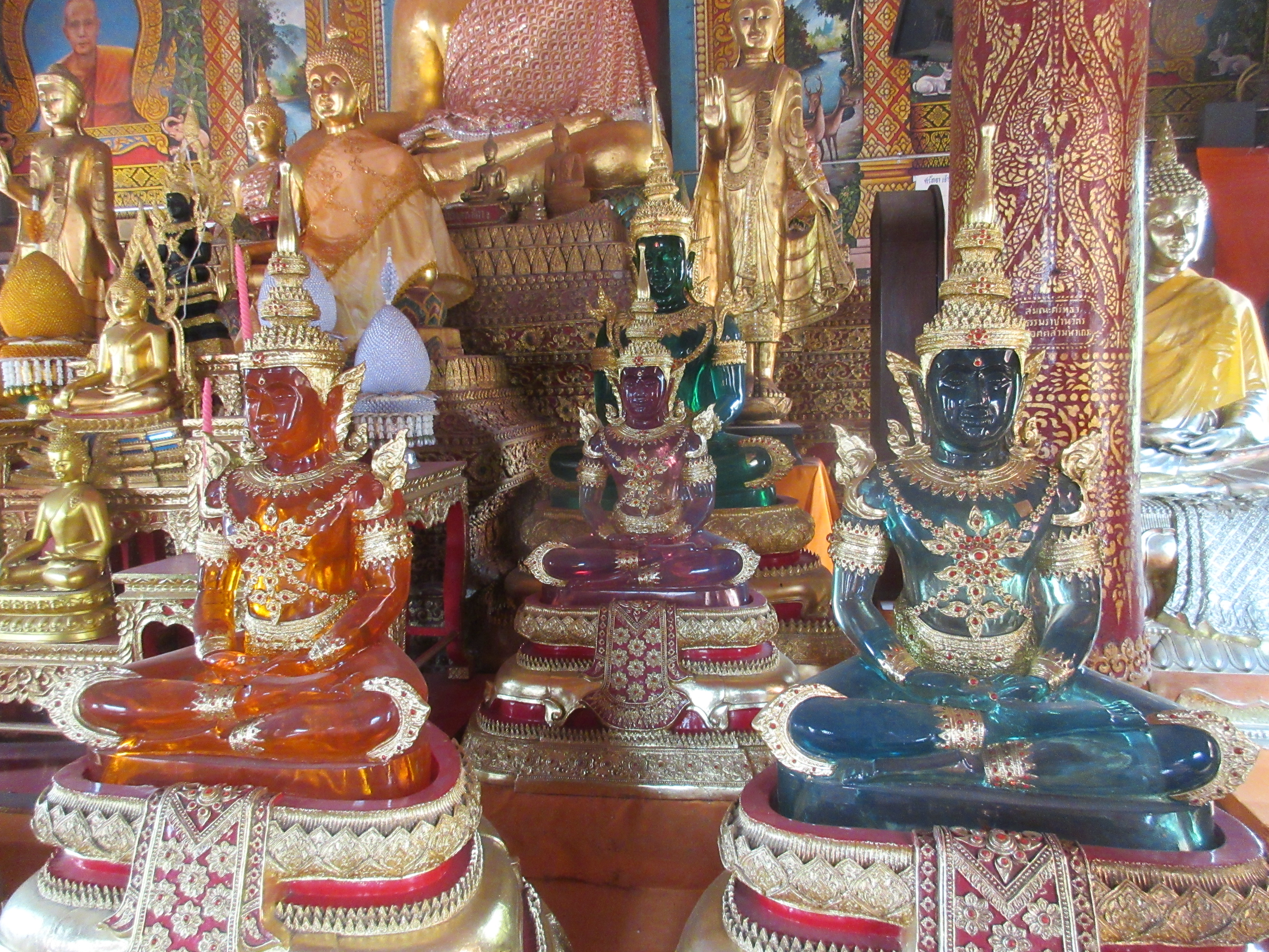 Päiväretkemme varrelle sattui – yllätys yllätys – tänäänkin useita temppeleitä. Kuvaan jatkuvasti kultaisia buddhia ja vallattomia seinägraffitteja.