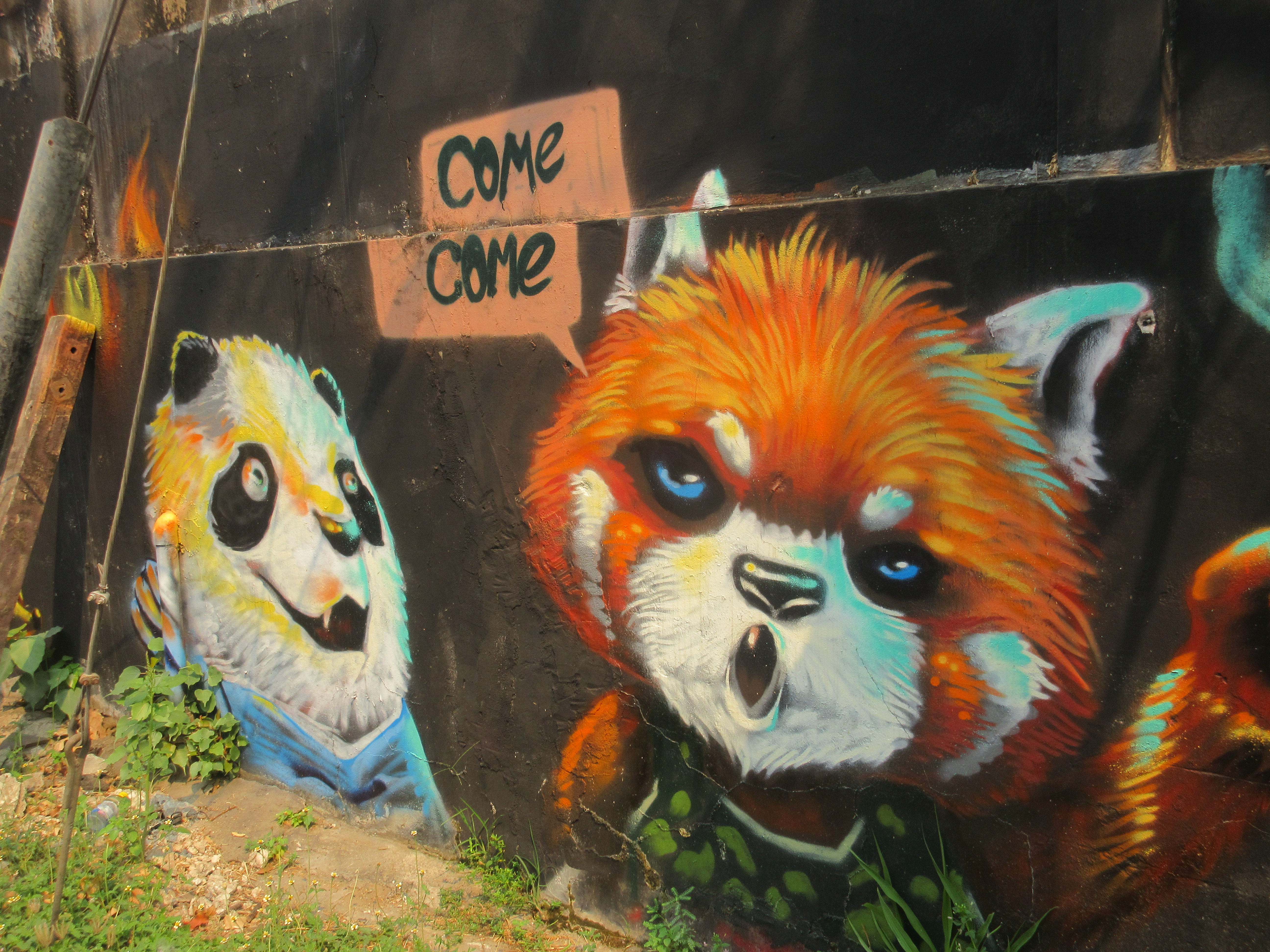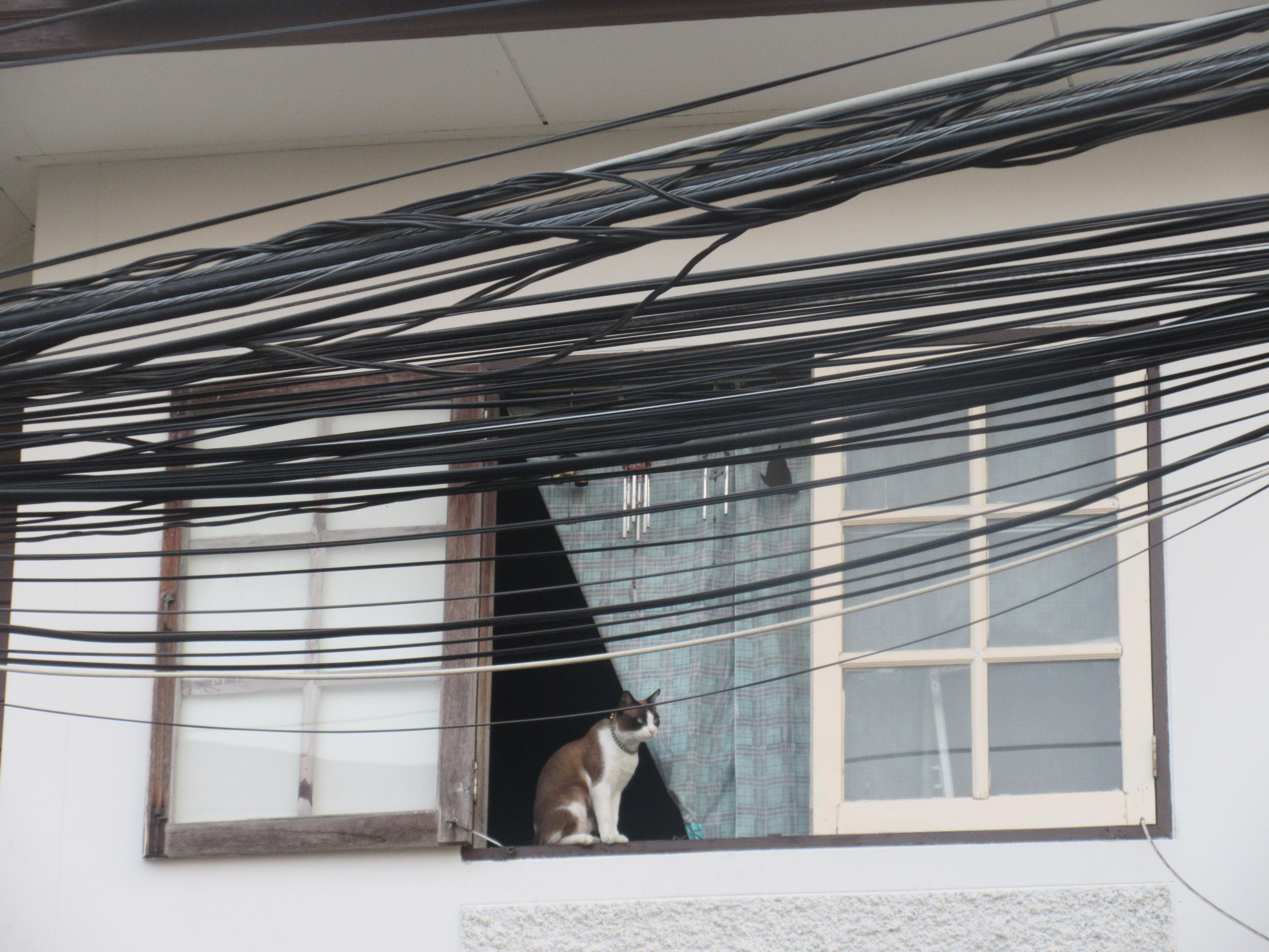 Jussi kierteli iltapäivällä lähitorilla ja lähikujilla. Hänellä oli tuomisina tuoreita tom yam aineksia ja chilipalkoja. Minä maalasin sillä aikaa uusille papereilleni – kissoja. Mies löysi jännittävän oloisen iltaruokapaikan. Japanilaisessa katukeittiössä oli jono, kun menimme sinne auringonlaskun jälkeen. Ruokalistalla lähes kaikki annokset maksoivat 35b.