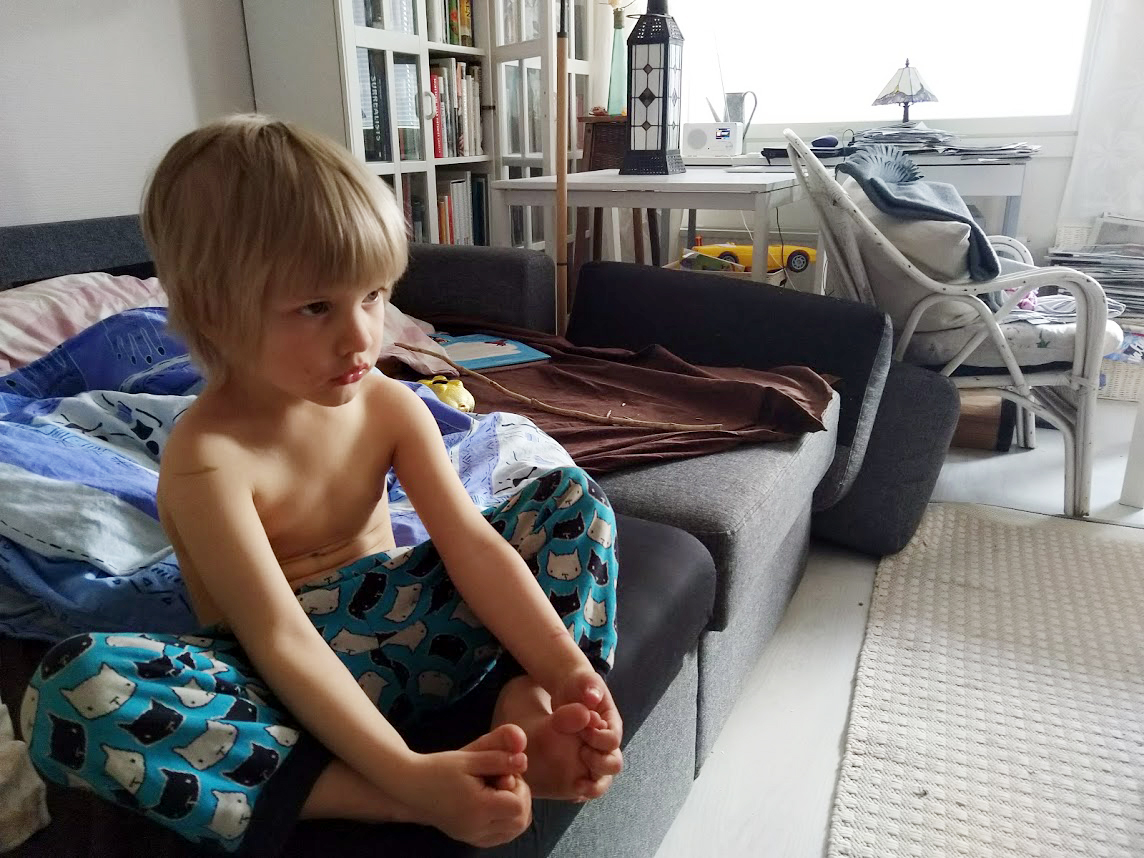 Samu on kuumeessa. Annalla on kauan kaivattu lomaviikko. Maalariammattikoulu loppui viime perjantaina ja uusi oppisopimustyö alkaa ensi viikolla. Tytär ei päässyt omiin rientoihin, sillä sairasta poikaa ei voi viedä minnekään. Paitsi meille. Miska on päiväkodissa ja minä Samuvahtina.