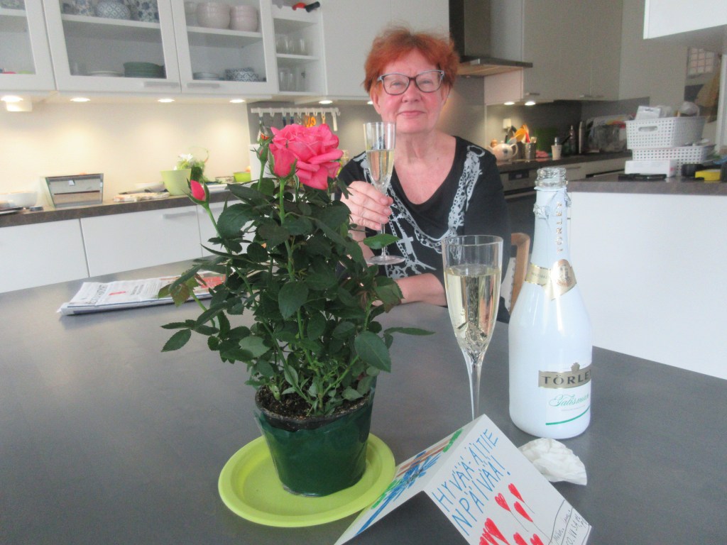 Äitienpäivästä tuli järkyttävä. Jussin kunto romahti silmissä. Hän pääsi hädin tuskin vessaan. Suunnittelimme, että istumme illalla saunan lauteilla ja nautimme lasilliset kuohuviiniä. Siitä ei tullut mitään, sillä Jussi ei päässyt lauteille emmekä saaneet pulloa auki. Enpä muista, että koskaan ennen olisi ollut tällaista ongelmaa.