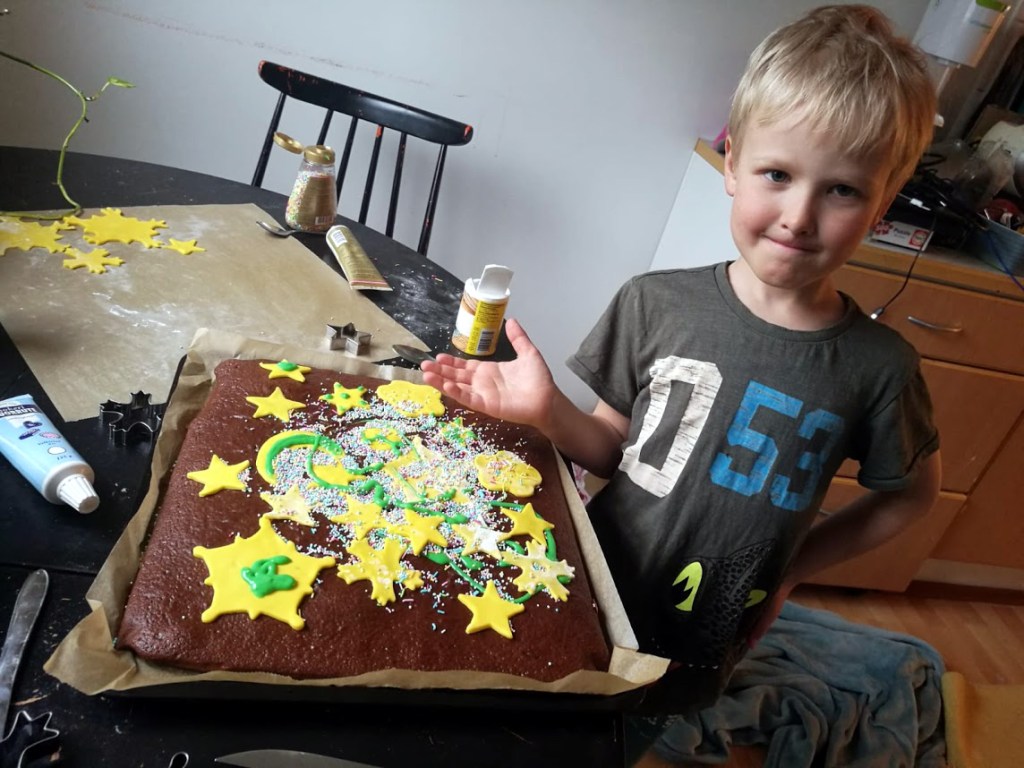 Anna soitteli ja lähetti kuvan Samun suunnittelemasta äitienpäiväkakusta. Minun piirakkani kalpeni välittömästi.