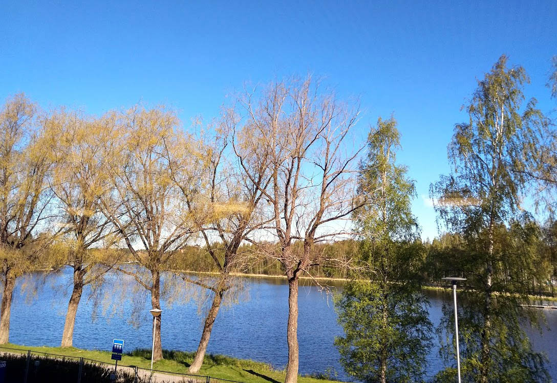 Sade alkoi iltapäivällä. Kävelimme maittavan thailounaan jälkeen vanhankirkon puiston läpi. Puut olivat heleän vihreitä ja koristeomenapuu hehkui vaaleanpunaisena. Poikkesimme puiston laidalla sijaitsevaan Olympia matkatoimistoon tervehtimään sisarta. Paikalla oli vain hänen kollegansa Tuija. ”Jaana lähti pikakäynnille Istanbuliin tutustumaan uuteen lentokenttään”. Se kuulosti aika eksoottiselta.