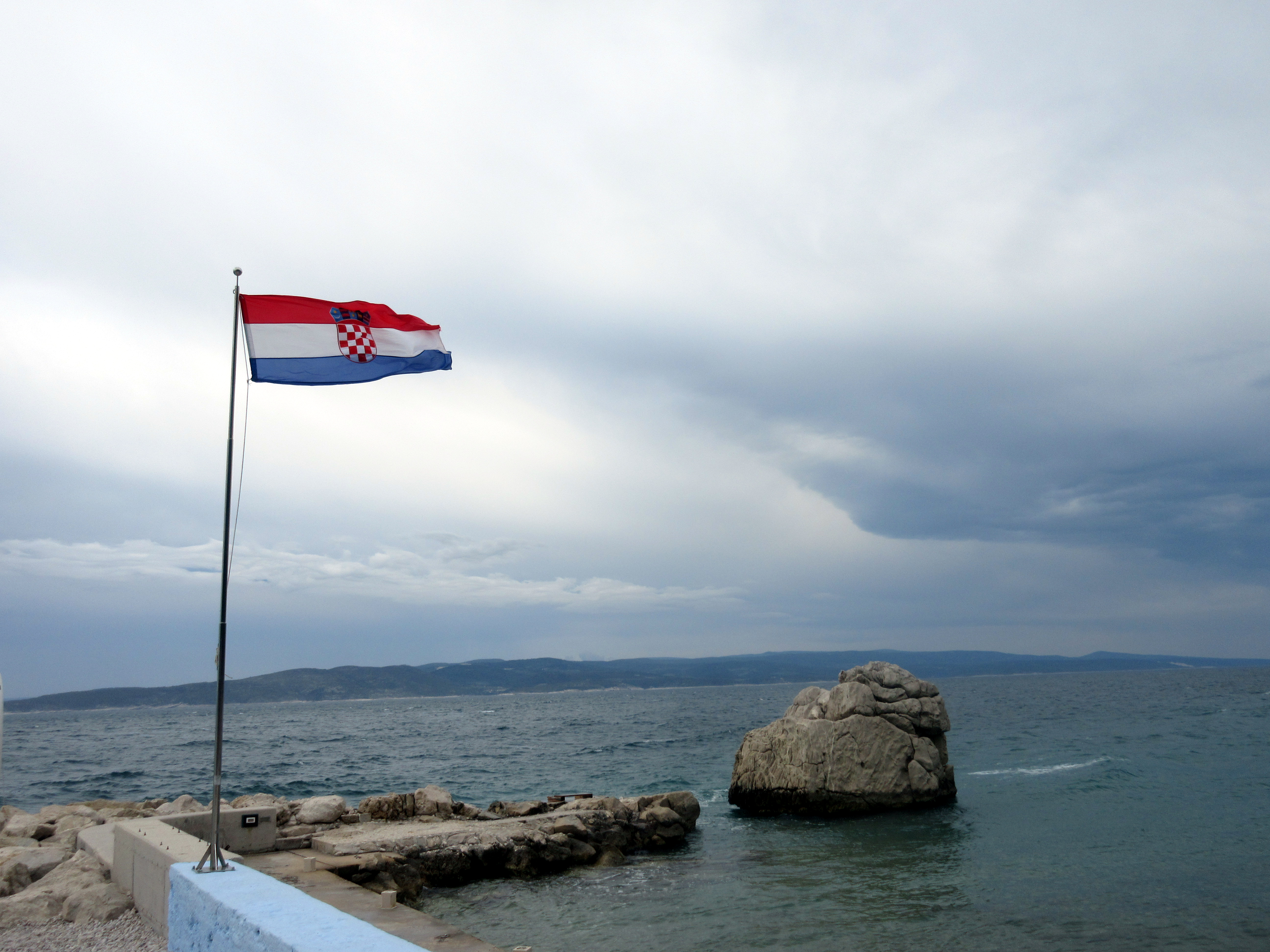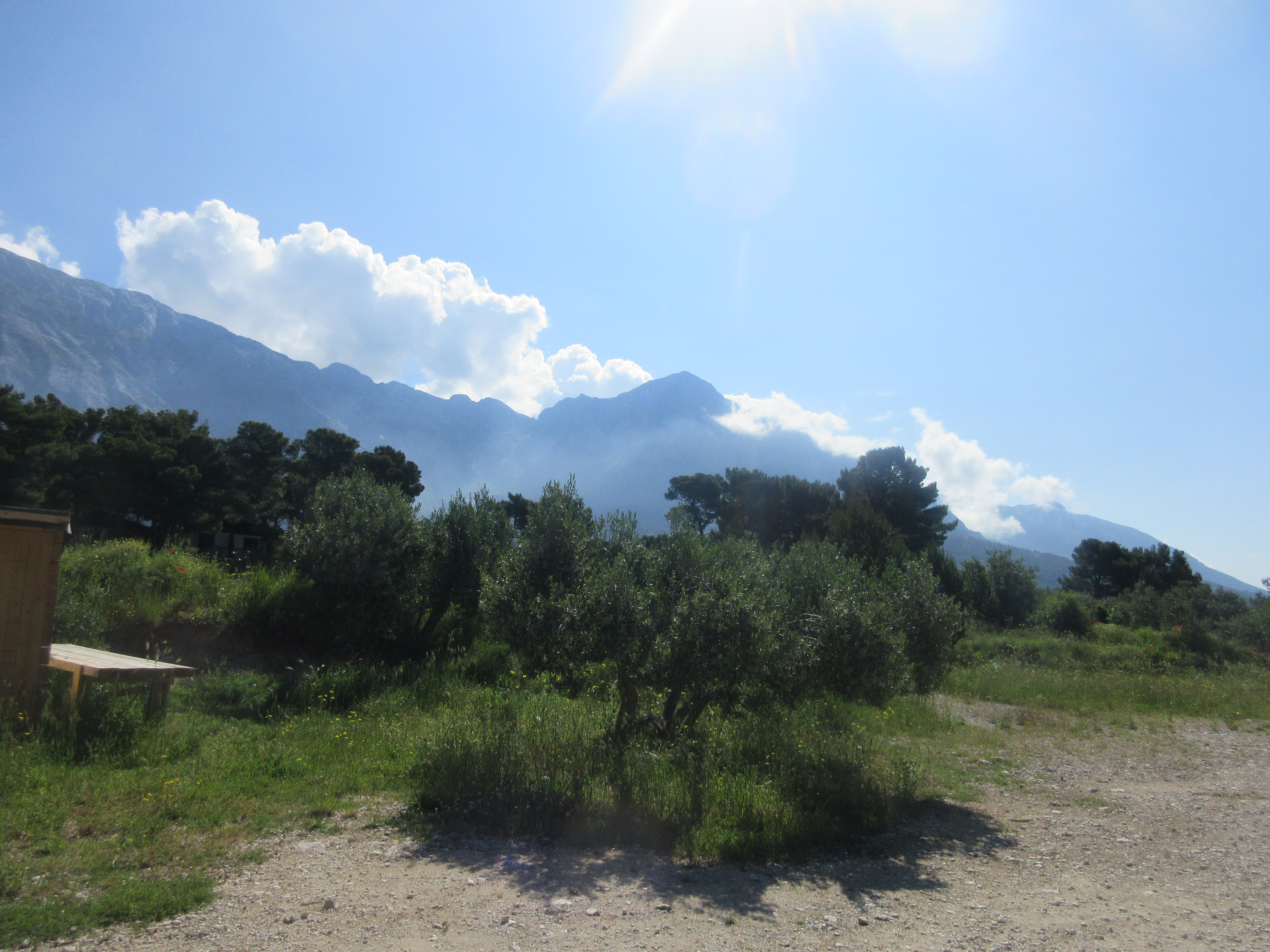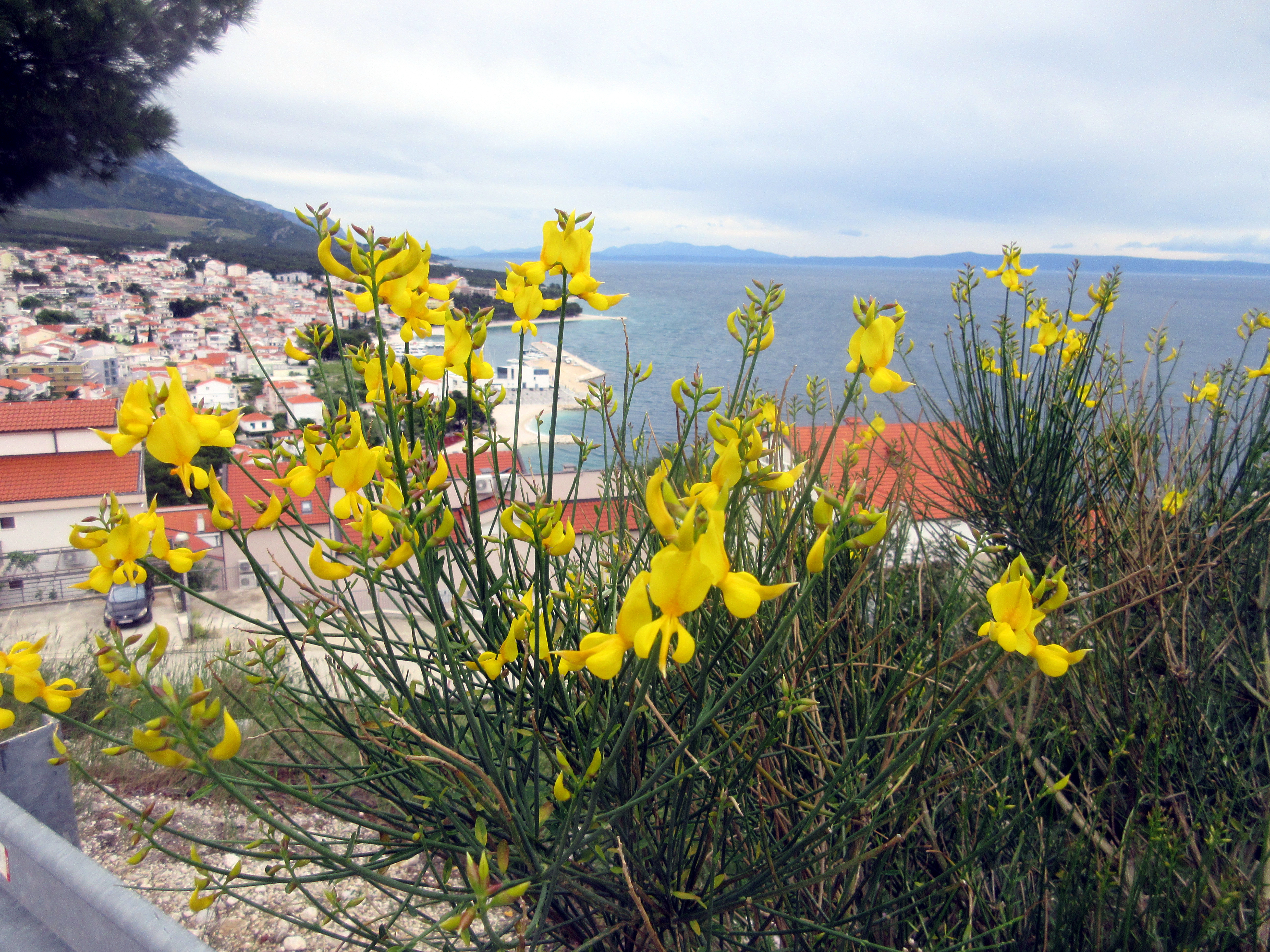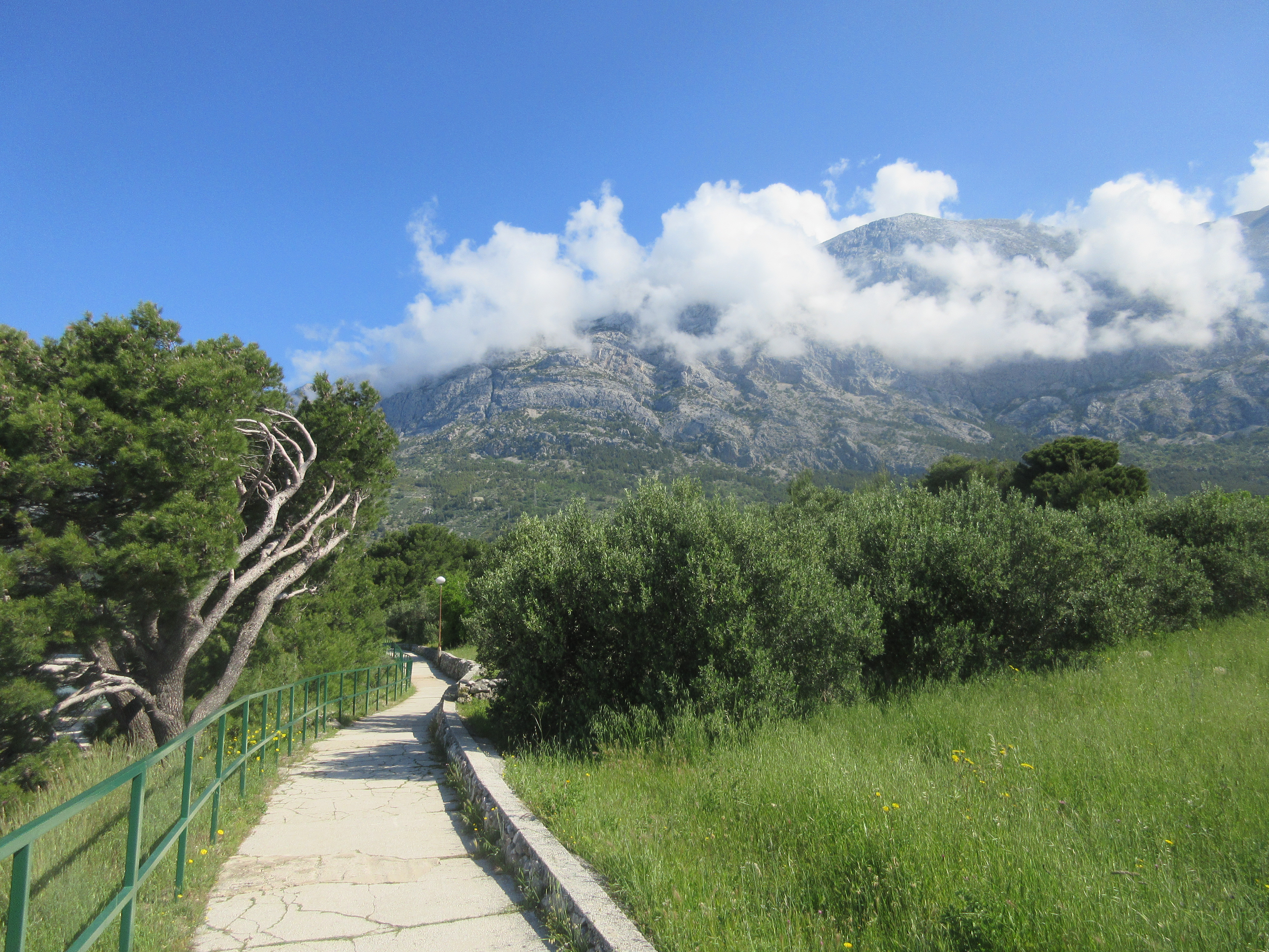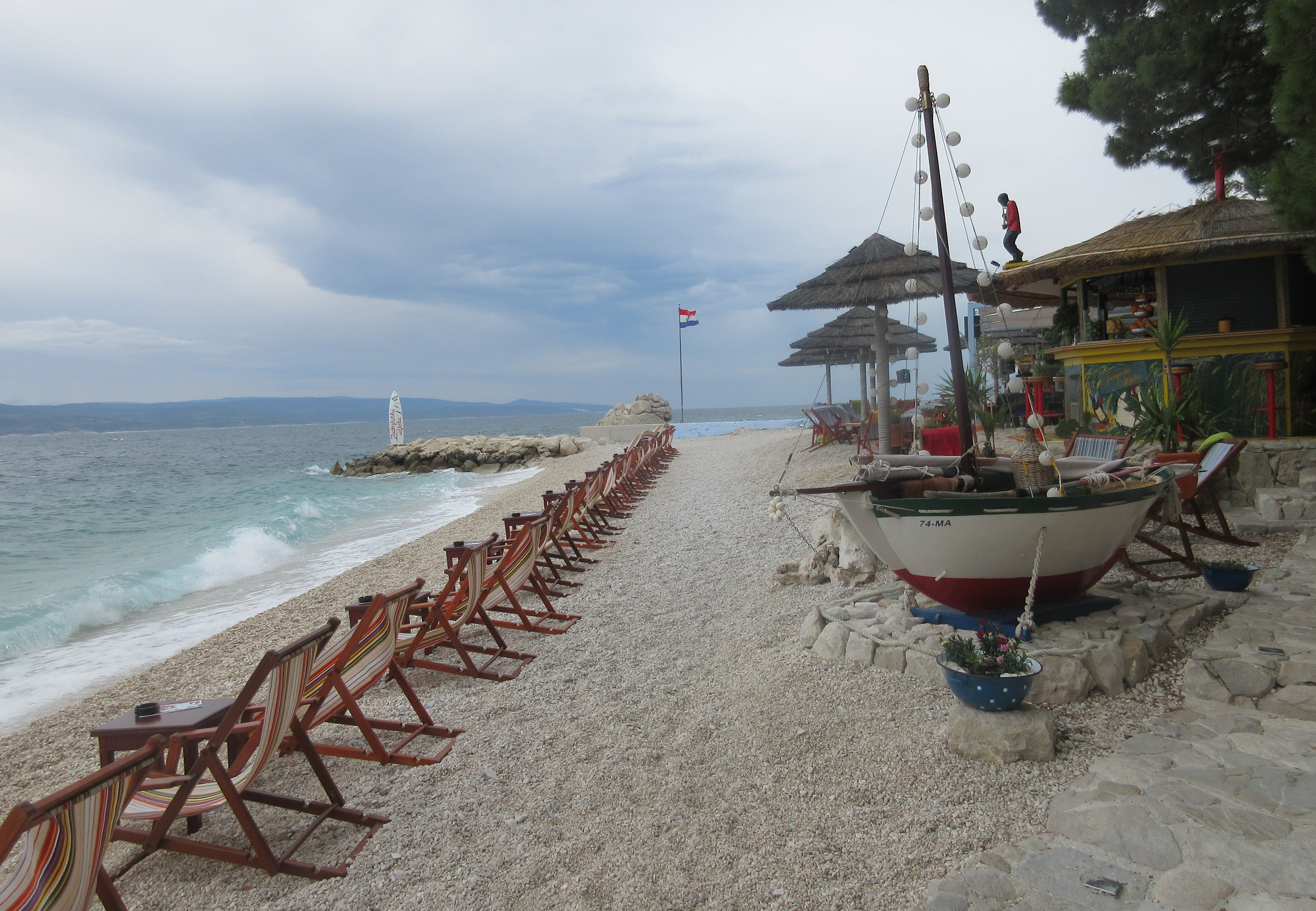 Palasin rantaa pitkin ja istahdin ensimmäiseen auki olevaan kahvilaan. Matkassa ei ollut vesipulloa, joten virkistys oli tarpeen. Paikka oli täpötäynnä aamuvirkkuja. Taisi olla joku seurue. – Saanko istua pöytääsi, komea herrahenkilö kysyi – ruotsiksi. Annoin luvan – englanniksi. Meillä oli mukava juttutuokio. Esittäydyimme, hän oli Per, opettaja. Mies oli kävellyt aamulla Brelasta ja aikoi jatkaa matkaa noin kymmenen kilometrin päähän Makarskaan.