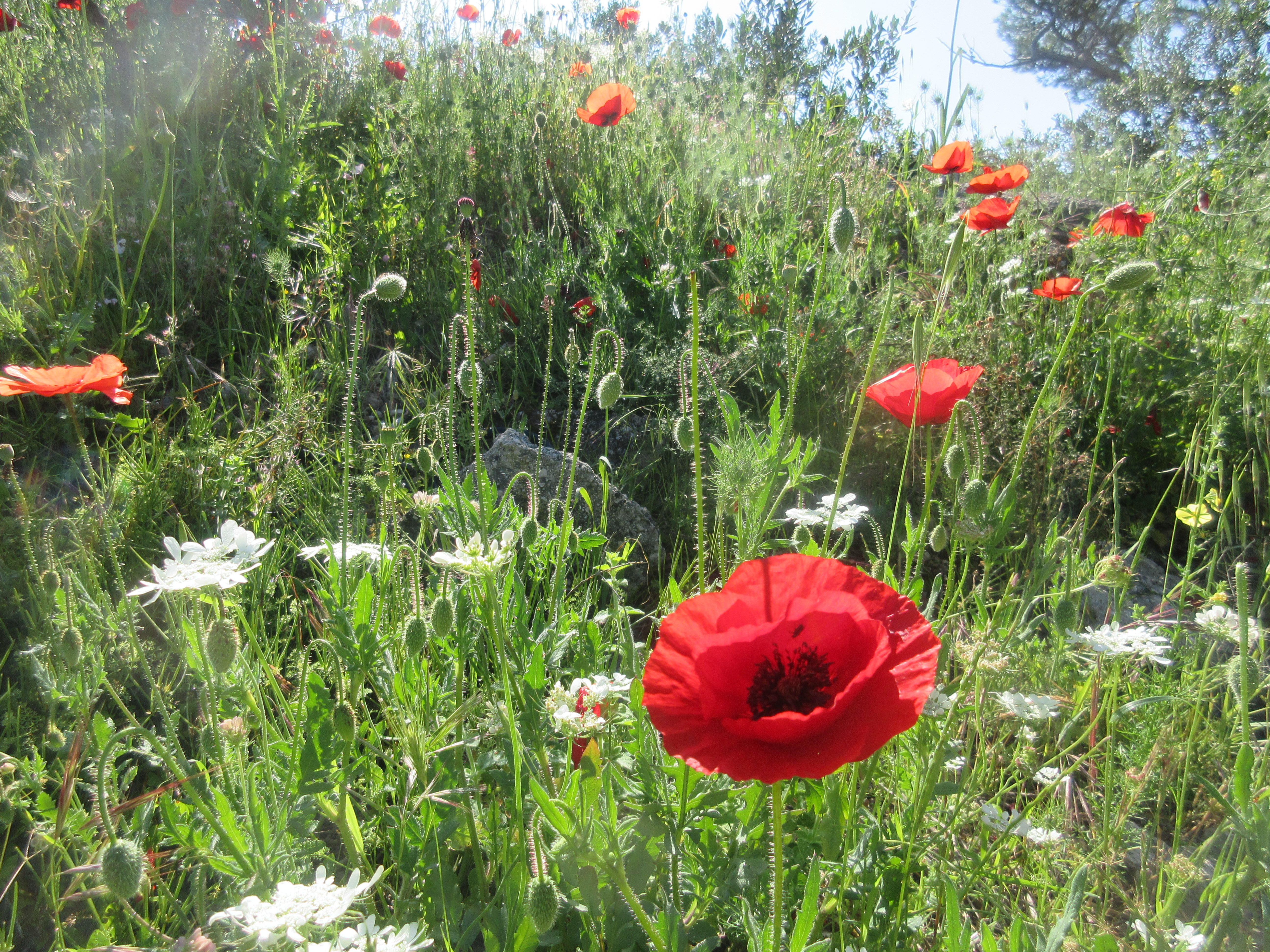 Kuljin rantaa myötäilevää kävelypolkua tunnin verran etelän suuntaan. Pääskyset kirmailivat ja unikot kukkivat punahehkuisina. Ilma oli yön jäljiltä suolaisen kirpeä. Aurinko lämmitti suloisesti.