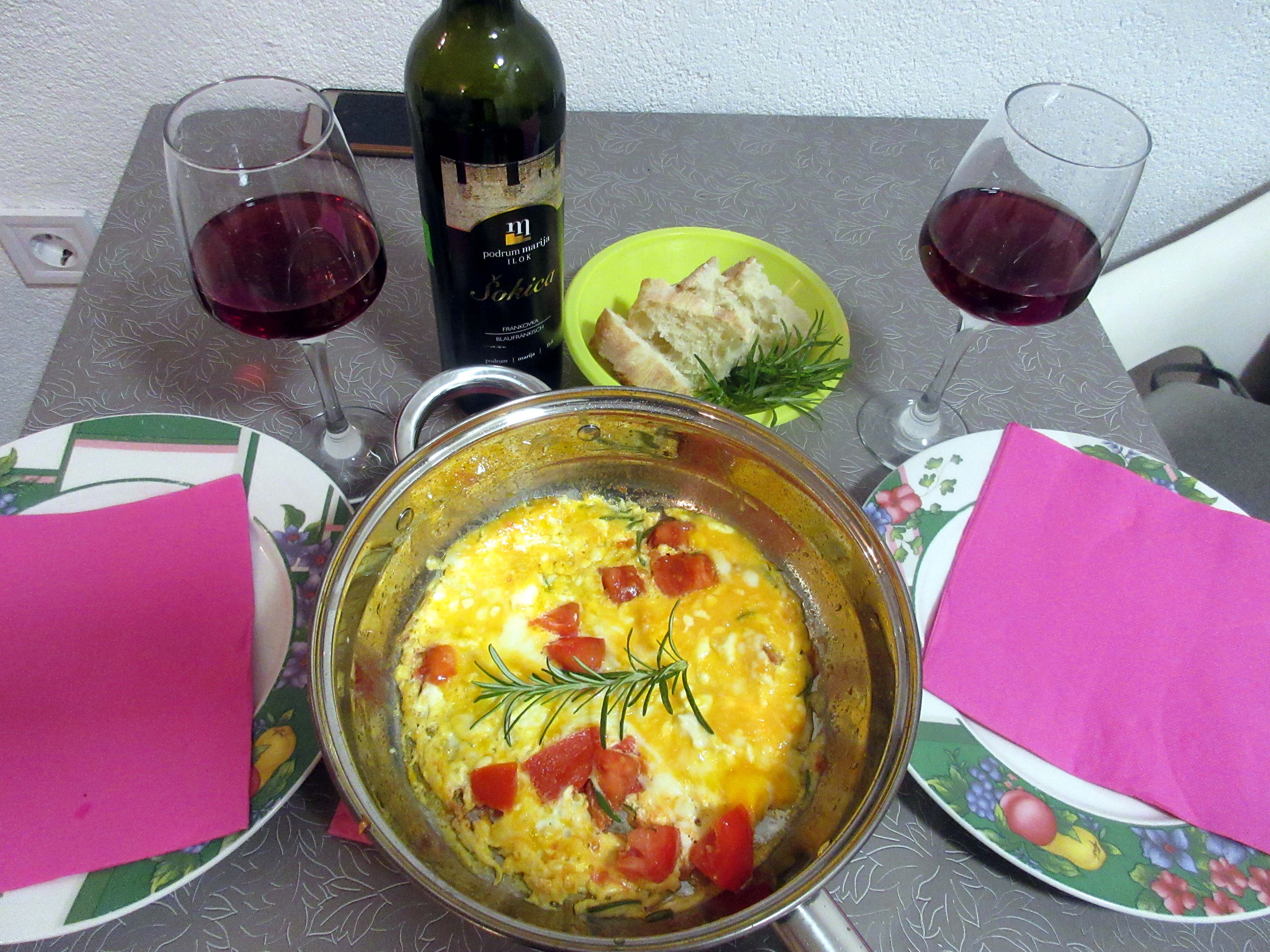 Hain pihalta nipun rosmariinia ja paistoin meille kelpo munakkaan. Nyt odottelemme, koska sade alkaa.