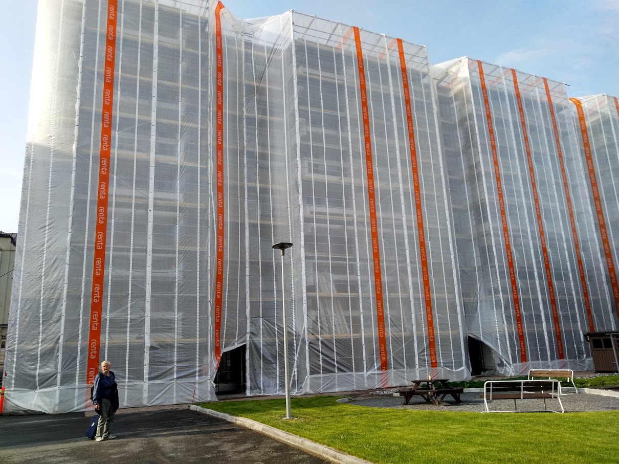 Nyt olemme kuitenkin onnellisesti kotona. Olimme viikon poissa ja talo on huputettu perusteellisesti. Julkisivuremontti on todellista. Nyt on pakko saada mökki pikaisesti asumiskuntoon.