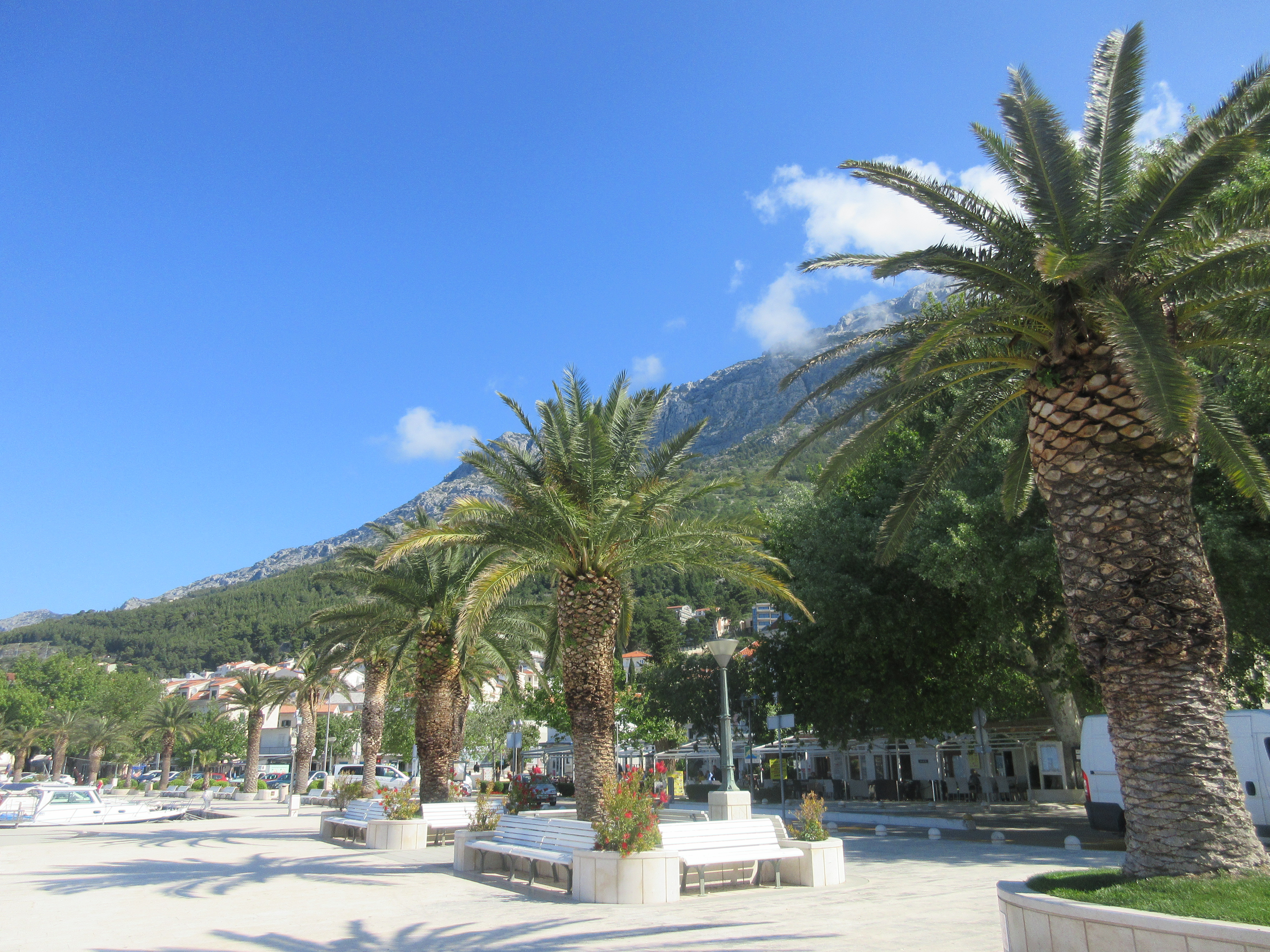 Kävelin rantaviivan tuntumassa takasin Baška Vodaan. Täällä lenkkeilijöitä hemmotellaan. Lähes koko matkalla oli kapea kävelypolku pikkukivisen rannan vierellä.