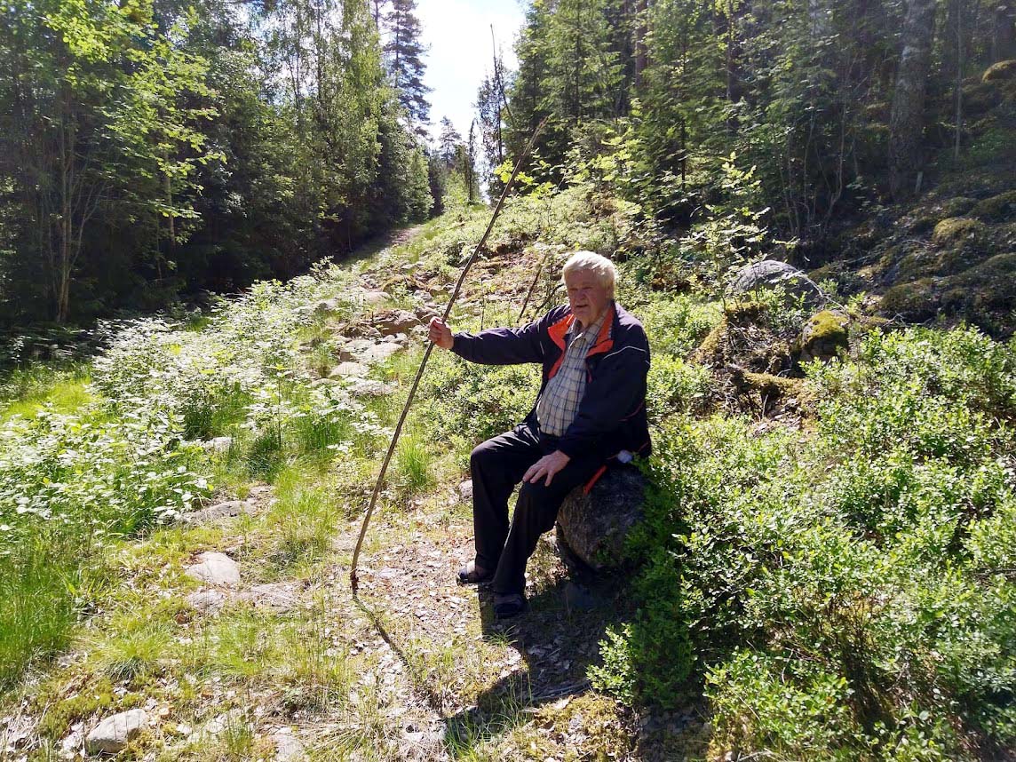 Joimme aamullakin pannukahvia. Kaikkeen tottuu. Koska mökissä oli aika kalsa, lähdimme lenkille. Jussi valitti, ettei metsäpolulla ollut penkkejä. Hän taittoi matkasauvan ja istahti kivelle. Kuulimme kevään ensimmäisen käenkukunnan. Jos määrä tarkoittaa ikävuosia, niitä meillä on riittämiin. Tuntui ettei lintu lopeta ollenkaan.