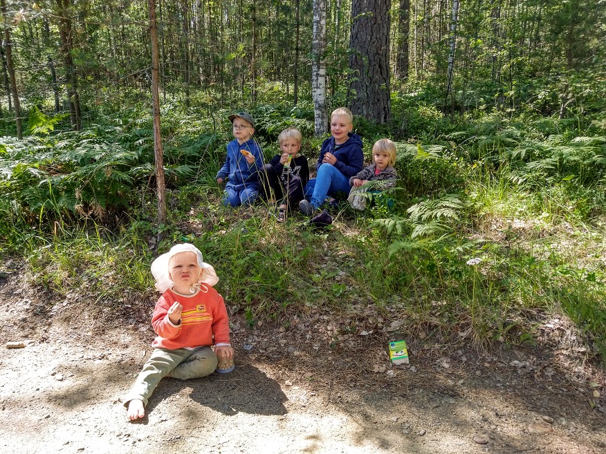 Touhupäivät mökillä jatkuivat. Kesätuuli puhalteli raikkaasti. Kaikki viisi lasta viihtyivät pihaleikeissä. Pikku-Ulpukin.