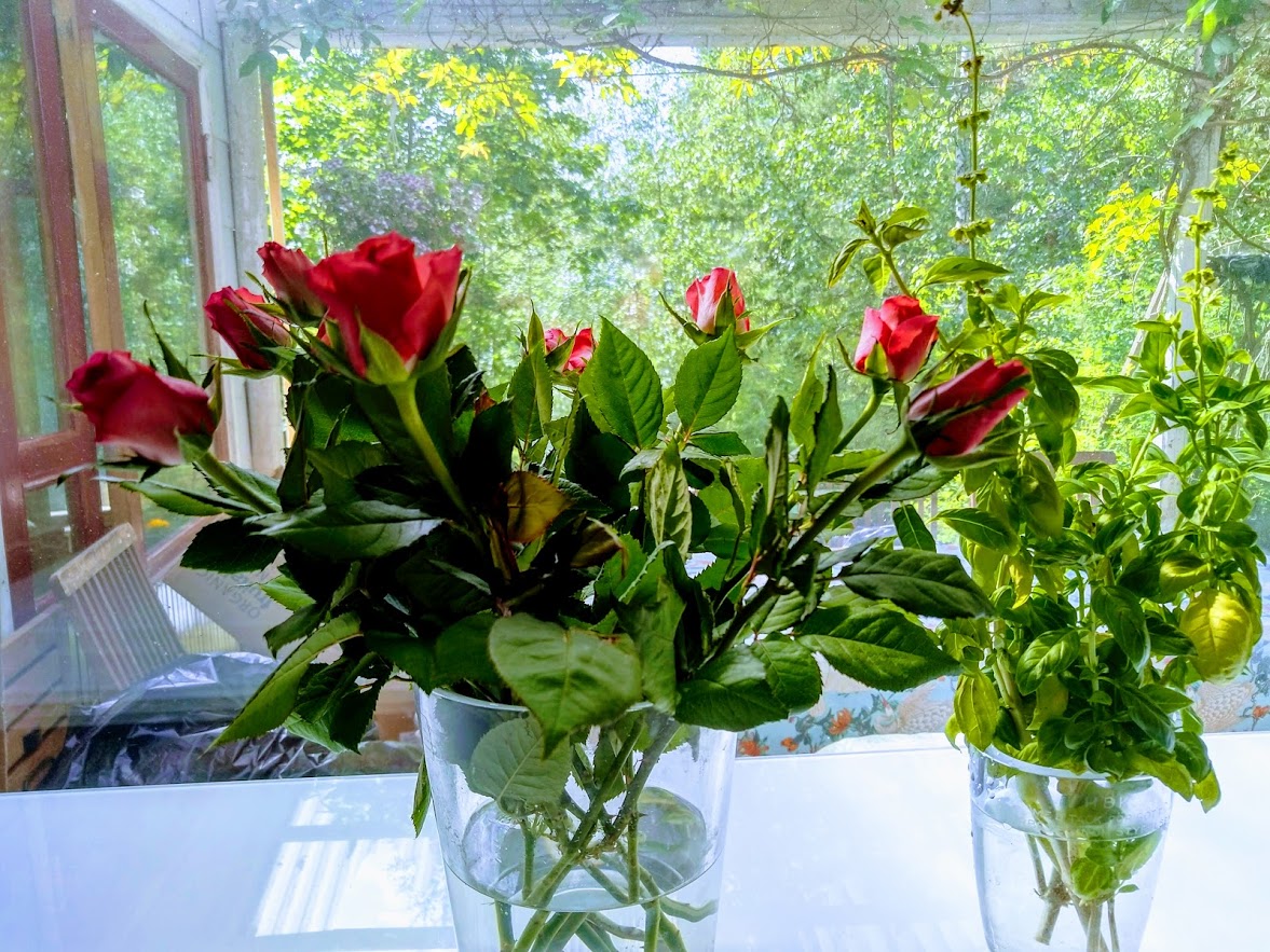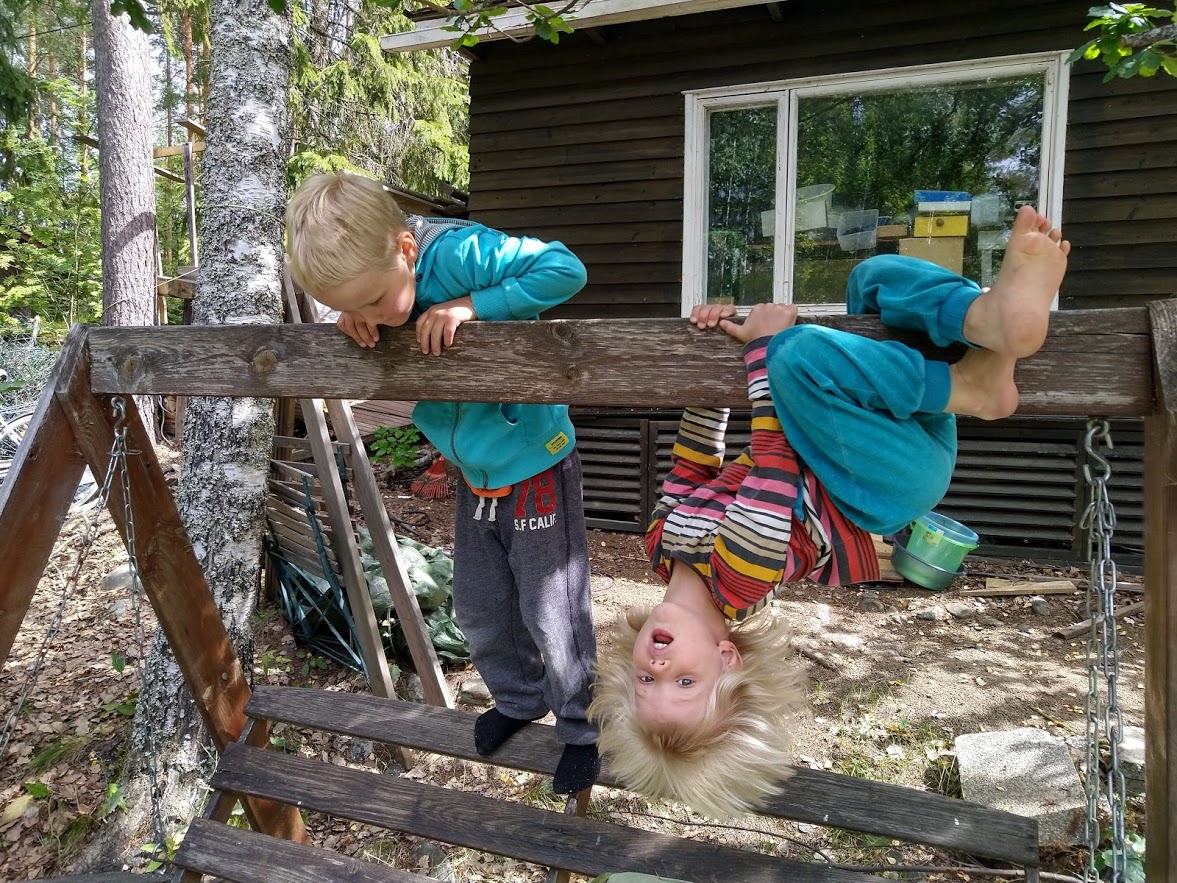 Me siirryimme rannalle. Saunoimme ja istuimme pitkästä aikaa rantakeinulla. Korkkasimme kellarista löytyneen kuohuviinipullon. Järvi oli peilityyni. Kesässä on puolensa.