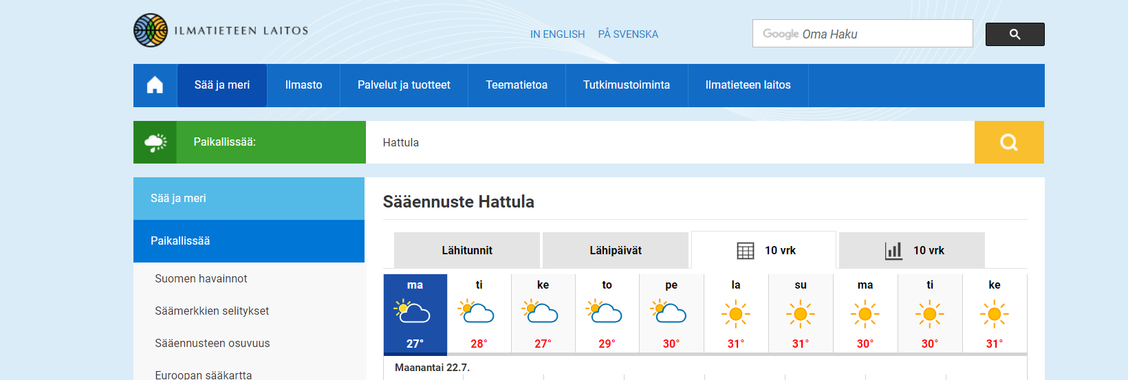 Sunnuntaiksi on luvassa edelleen tukalaa hellettä. Hyvä kun kattourakka on nyt ohi.