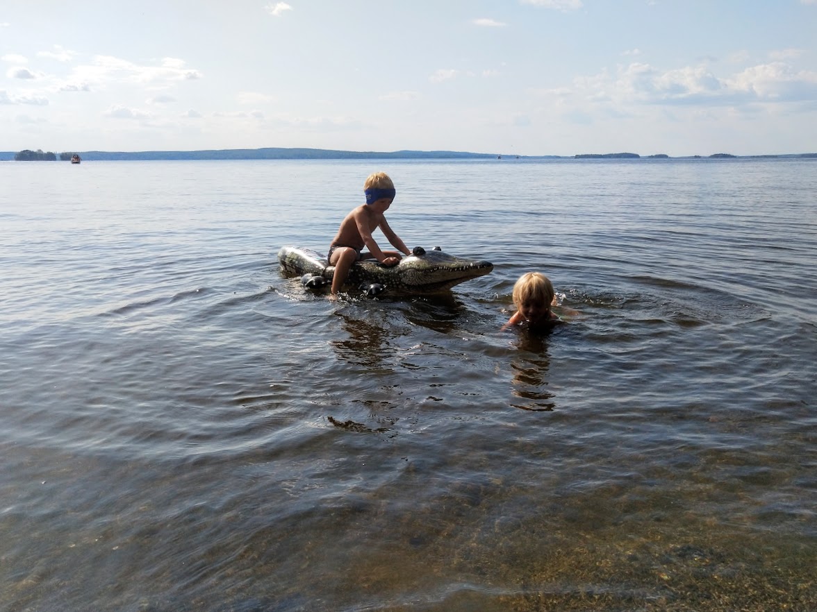 Lähdimme iltapäivällä porukalla hiekkarannalle. Uudet vesilelut saivat kyytiä.