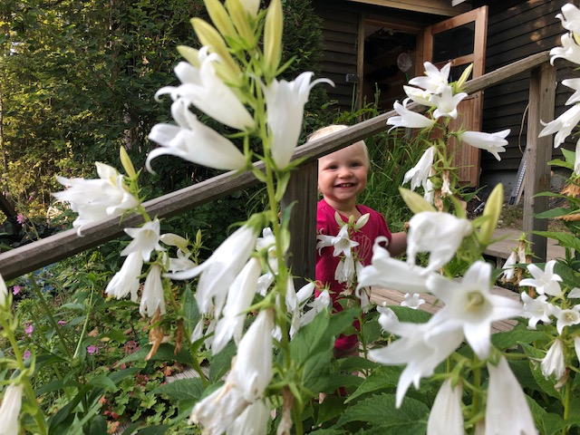 En olisi uskonut että ilahdun pilvisistä päivistä. Olemme laittaneet keinulle aurinkovarjon. Se antaa pientä helpotusta paahtavaan aurinkoon. Eilinen päivä oli ihanteellinen. Poutapilvet purjehtivat taivaalla ja pieni tuulenvire raikasti ilmaa. Jussi täytti vesipuntut ja minä kastelin letkulla kukkapenkit.