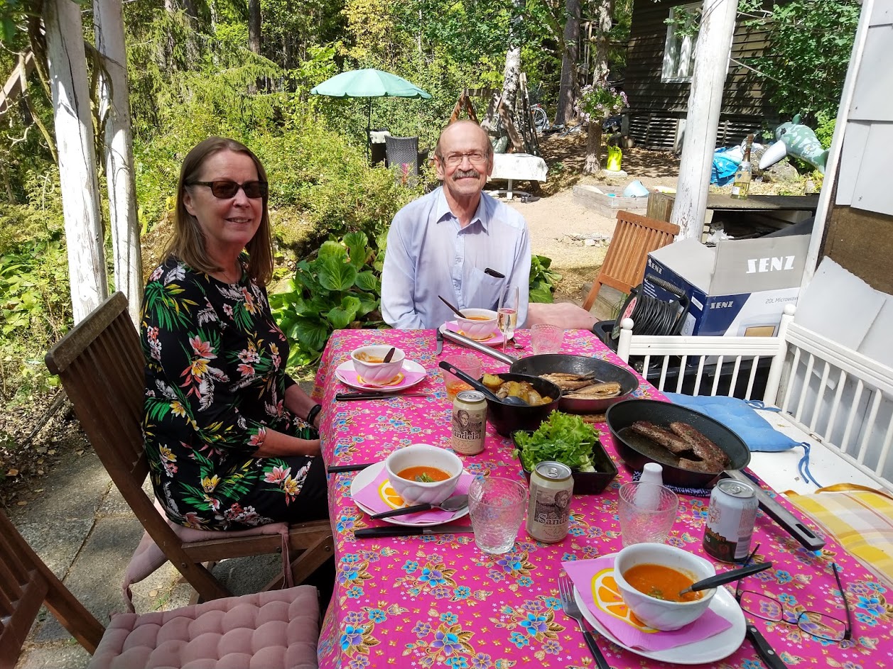 Kesähelteet loppuivat kuin seinään. Tiistaina pohjoistuuli puhalteli niin kylmästi, että pysyttelimme sisätiloissa. Eilen keskiviikkona oli onneksi lämmin päivä. Saimme Liin ja Kaizun kesävieraiksi.