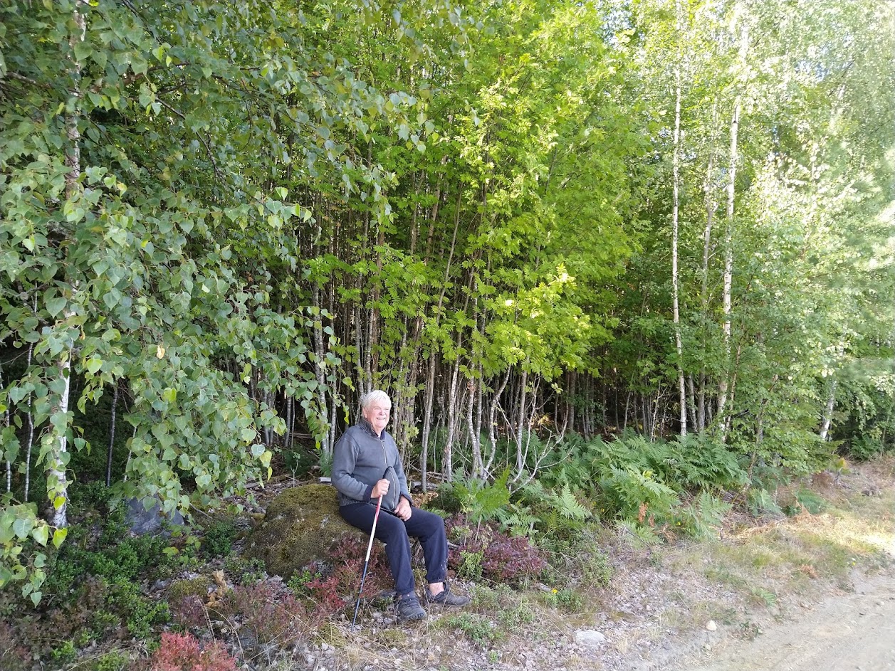 Jussin kanssa teemme päivittäin pieniä lenkkejä. Mies jaksaa, kun saa istahtaa välillä lepäämään.