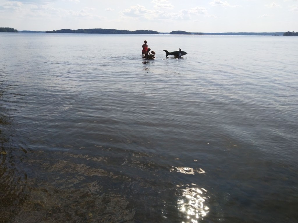 Kahluuallas oli pian hiekasta samea. Leena kaatoi illalla vaivihkaa vedet kukkapenkkeihin. Kukat kiittivät. Pojilla oli uimarenkaat ja vesilelut matkassa. Vihreä muovikrokotiili ja mustavalkoinen hai näyttivät vekkuleilta kelluessaan järvivedessä.