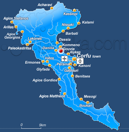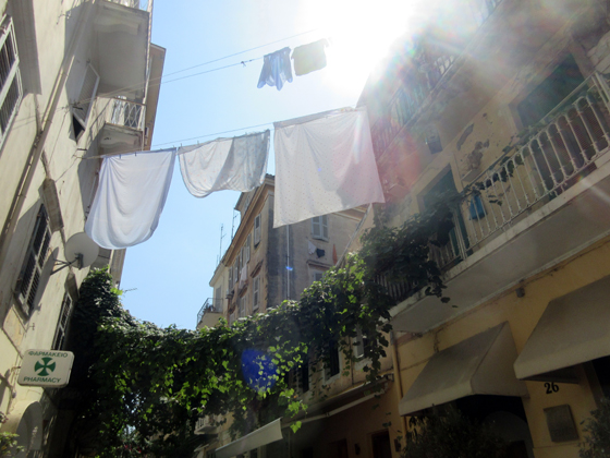 Majailimme vuosi sitten saaren pohjoisosassa Agios Stefanoksessa. Nyt olimme mukavan lähellä pääkaupunkia, vain yhdeksän kilometrin etäisyydellä pohjoisen suuntaan. Bussi numero seitsemällä pääsi kätevästi 2:30 euron hintaan käymään Corfu Townissa tai Kerkyrassa niin kuin sitä paikallisesti kutsutaan.