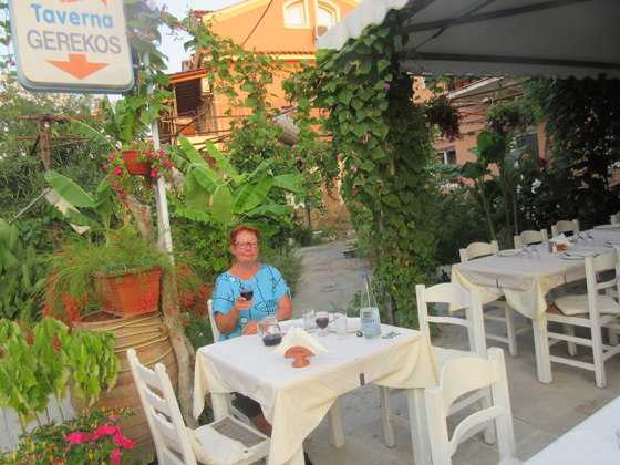 Matkan hintaan kuului buffetaamiainen. Maistelimme viikon aikana paikallisia ruokia. Erityisesti makeat tomaatit ja feta sekä ihana saganaki olivat herkkua. Sain kylän tavernassa valkosipuliöljyssä grillattua mureaa mustekalaa. Se sai makunystyrät hyrisemään.