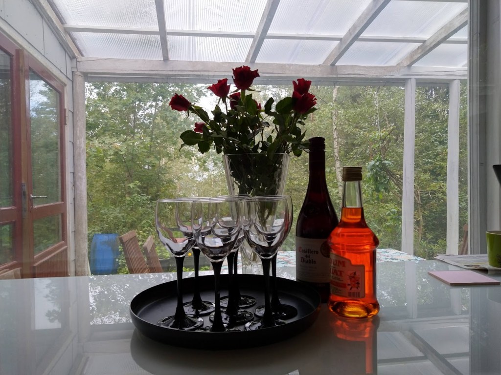 Olen oikeasti kiitollinen, että juhlat pakottivat meidät hommiin. Mökin järjestely remontin jäljiltä on vieläkin kesken. Nyt edistyimme harppauksin. Säätiedotus lupaa sadekuuroja. Onneksi meillä on nyt tilava ruokapöytä sekä ulkona että sisällä. Nukkumapaikkojakin riittää kaikille.