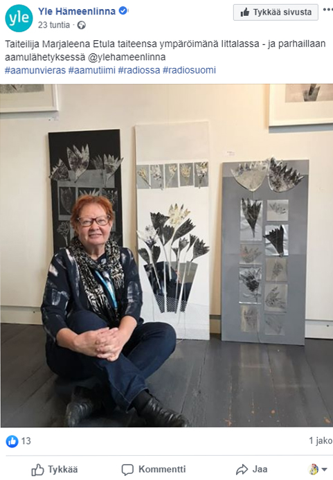 Niinpä olin maanantaina 23.9. aamun vieraana. En jännittänyt, sillä oli mukava jutella taiteesta ja omasta tekemisestä.