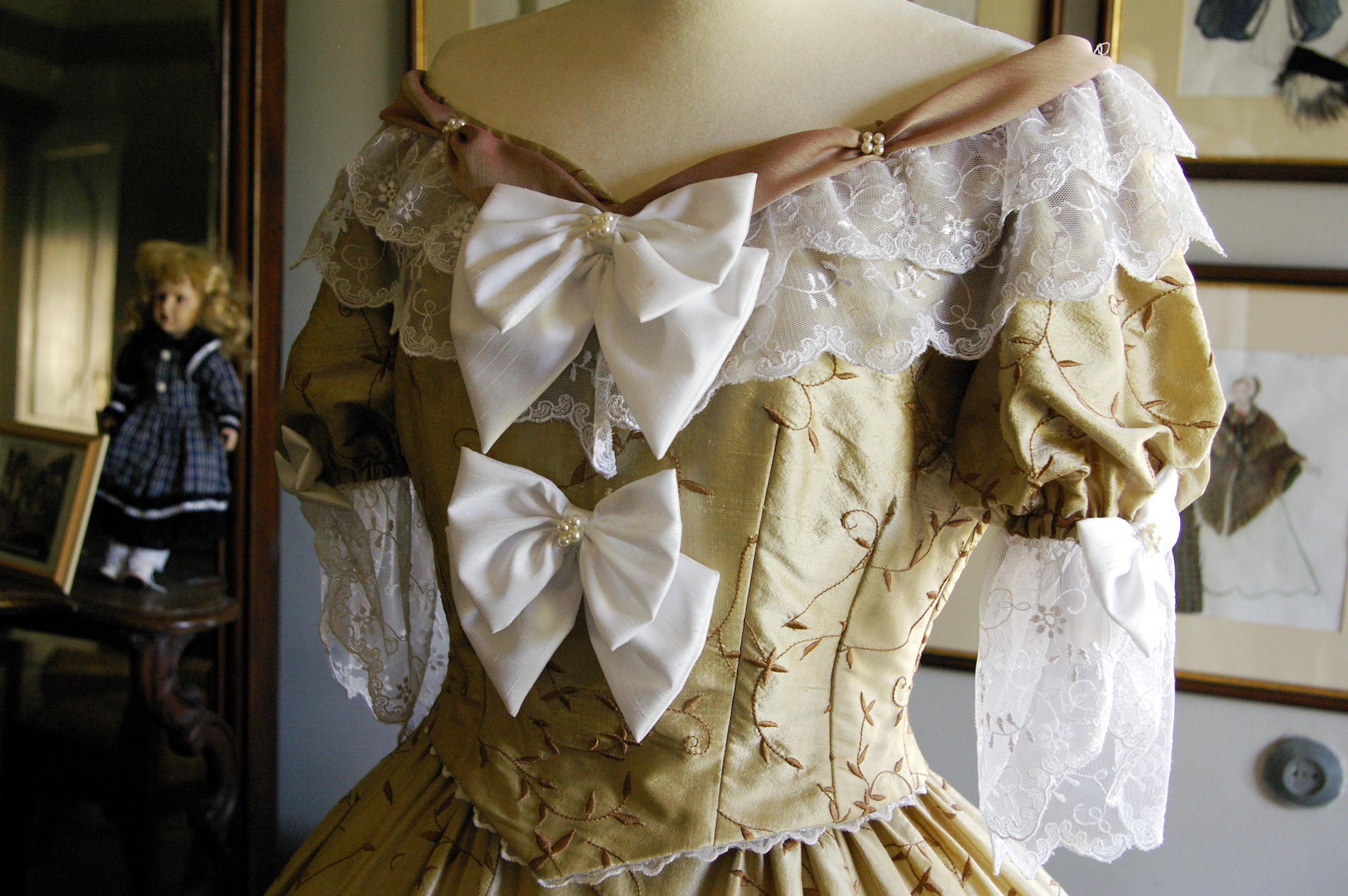 -Hei, tuolla tarvikevarastossa on monta pakkaa silkkiä ja satiinia. Minä olen käynyt tekstiilikurssin. Olen oikeasti artesaani. Tulkaa mukaan, ompelen teille tuossa tuokiossa juhla-asut. Mutta älkää kertoko linnan väelle. Tästä tulee yllätys.