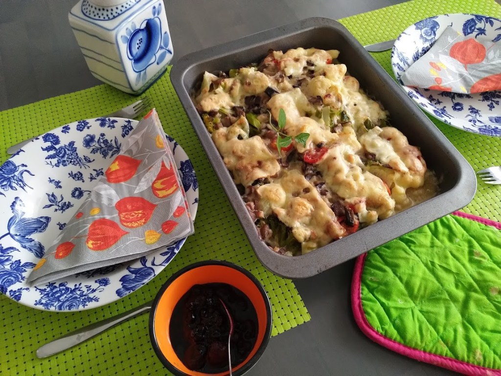 Palasin punaposkisena kotiin. Jussi oli hakenut kaupasta erilaisia kaaleja. Hän kunnostautui tekemällä ison annoksen coleslowta. Minä kokkasin sen kaveriksi kukka- ja parsakaalipaistosta tattikastikkeen kera.