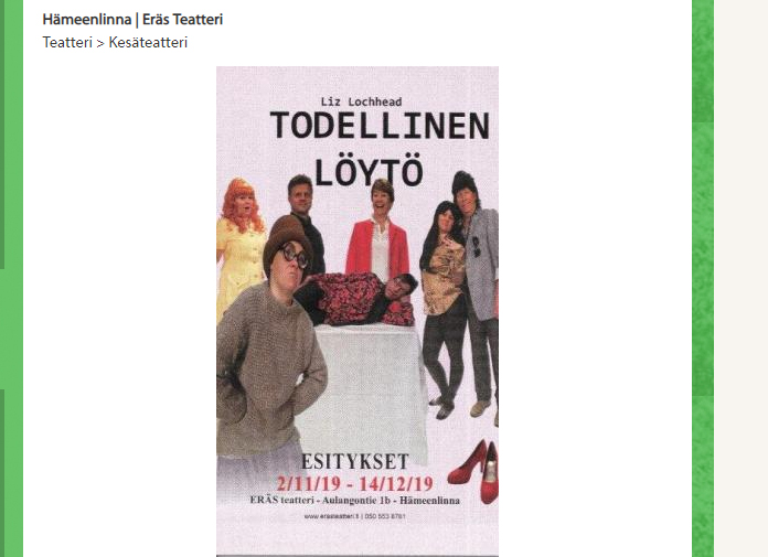 Nautimme esityksestä. Suosittelen lämpimästi.
