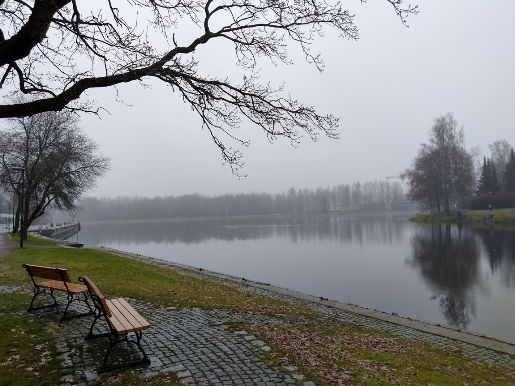 Teimme pienen lenkin sadesäässä. Maisema oli utuisen kaunis. Sitten olikin jo juhlalounaan aika.