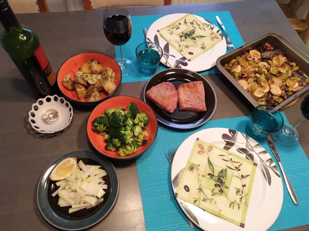 Paistoin meille päivällä oikeaoppisesti tonnikalapihvit. Vain puolitoista minuuttia per puoli ja sitten viideksi minuutiksi vetäytymään.