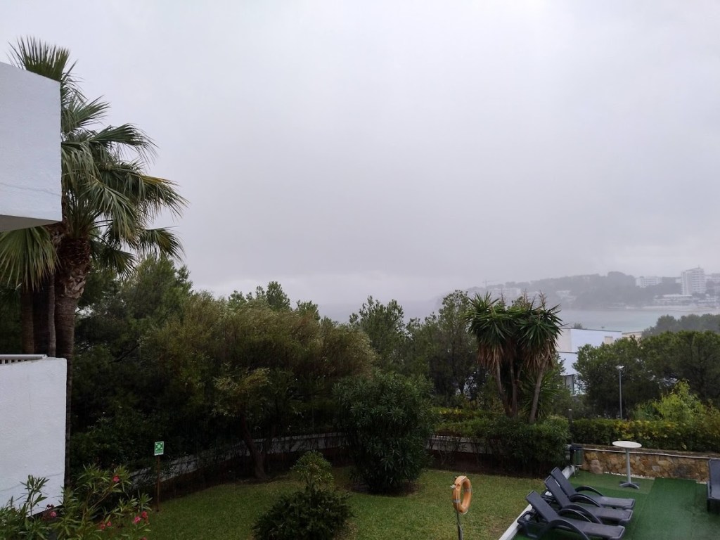 Perjantaiaamuna heräsin sateen ropinaan. Maisema parvekkeelta oli sakean usvan peitossa. Arvelin, että meillä on tiedossa sisäpäivä.
