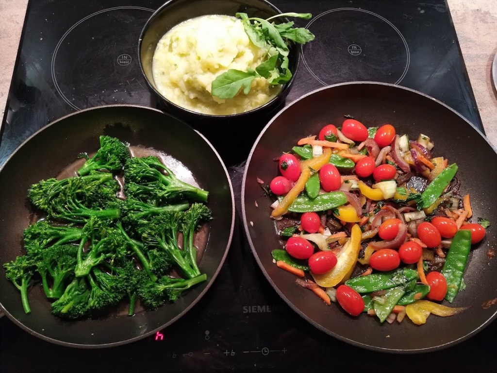 Kokkasin marraskuun pimeimpään aikaan heleän vihreää broccolinoa ja punaisia minitomaatteja. Löysin kaupasta tuoreita thaiwokkivihanneksia. Olen käyttänyt aiemmin vain pakasteita.
