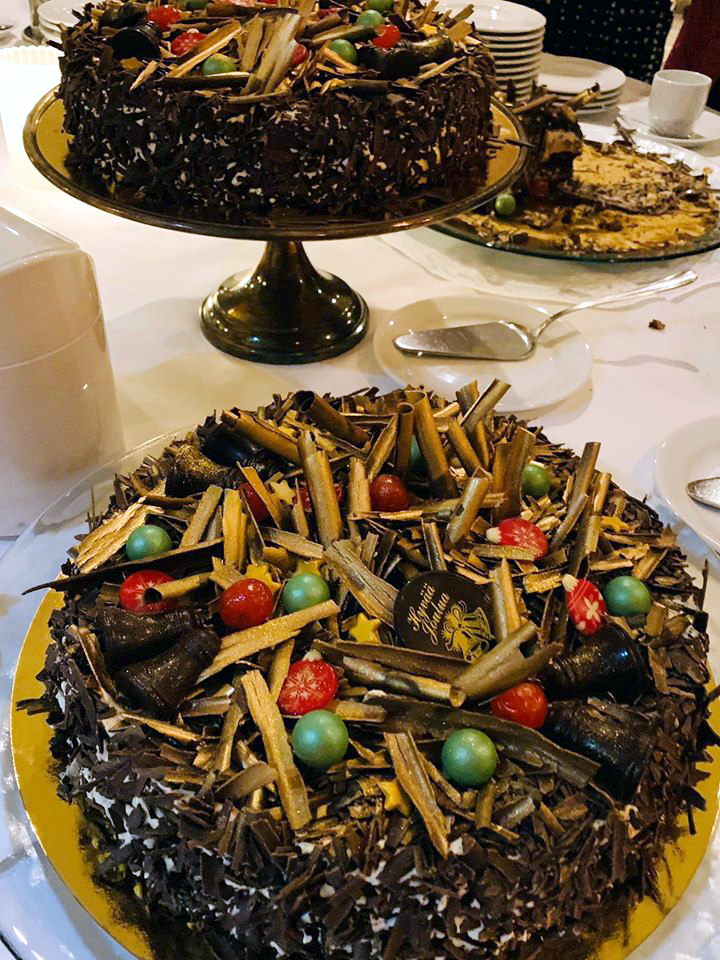 Minä, joka en ole makean ystävä, olin myyty. Kakku oli ilmavan pehmeä ja tumma suklaa rapeaa.