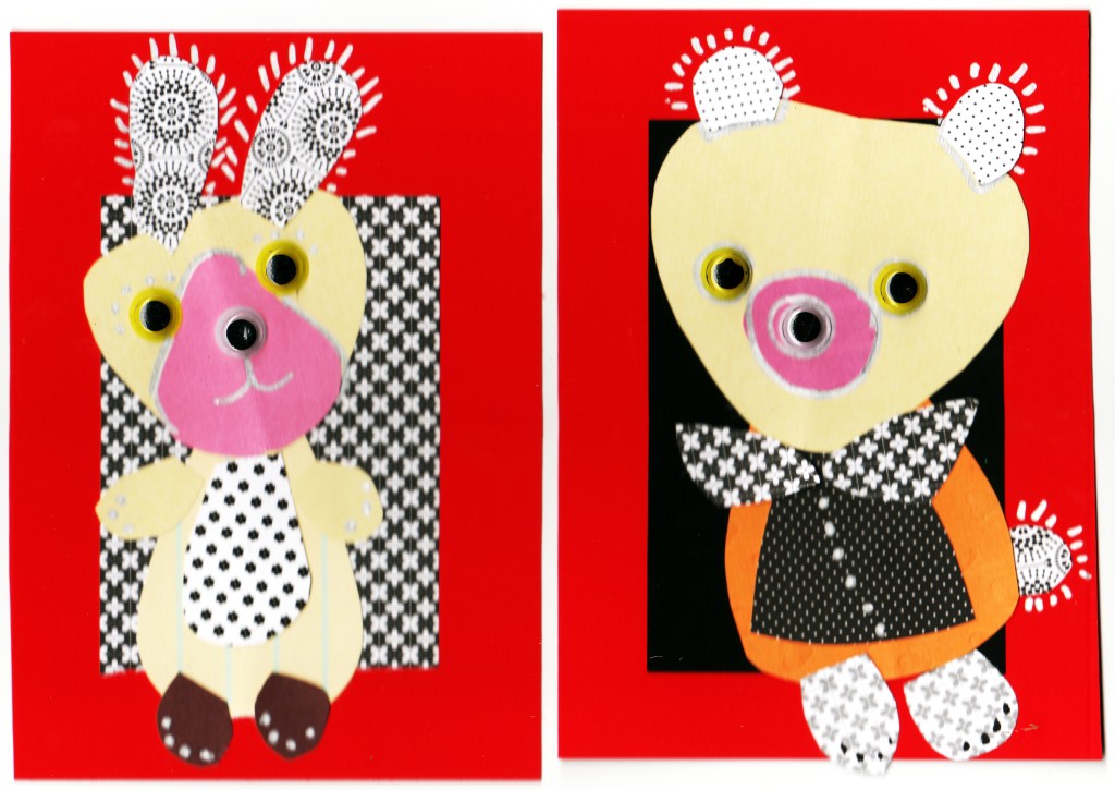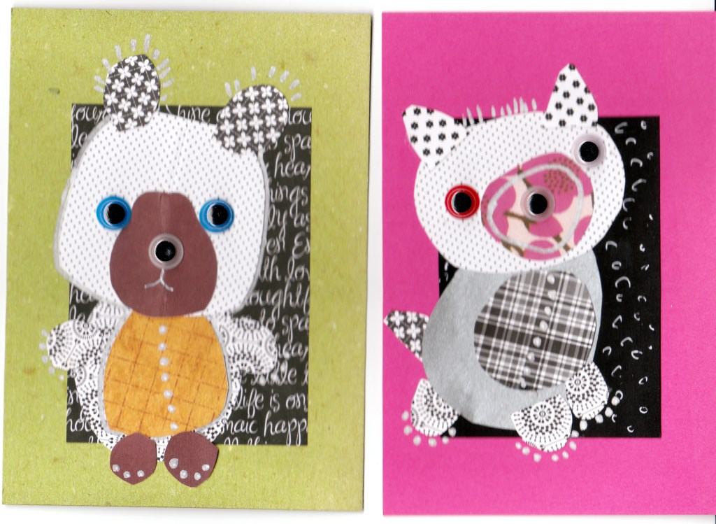 Innostuin tekemään joulun alla täsmäkortteja pikkuväelle. Ostin lomamatkalla Mallorcalla askartelukaupasta pussillisen erivärisiä silmiä. Ne antoivat heti ilmettä unikavereille.