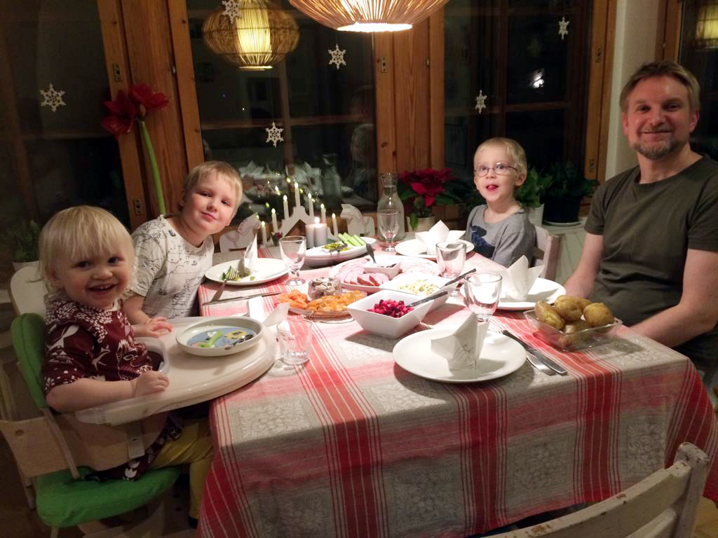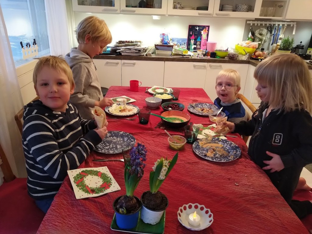 Saimme espoolaiset jouluvieraiksi. Katoin ensin lapsille tortilloja ja sen jälkeen aikuisille ja Ulpulle jouluruokia.
