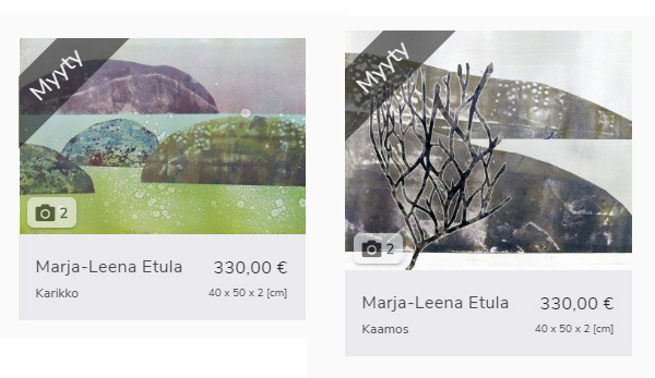 Taideverkkokauppa Taiko yllätti minut iloisesti ihan vuoden lopuksi. Sain illalla sähköpostiviestin, että kaksi grafiikanvedostani on myyty. Taiderintamalla on ollut viime aikoina hiljaista. Tämä antoi taas kerran uskonvahvistusta. Taiteilija kiittää.