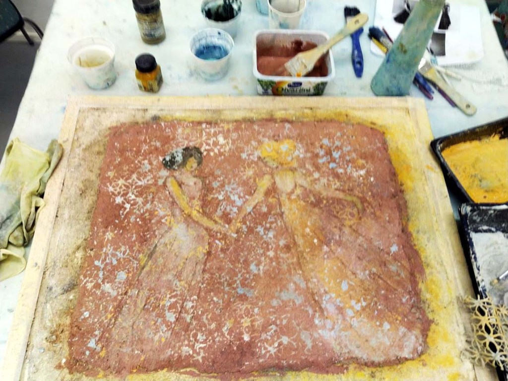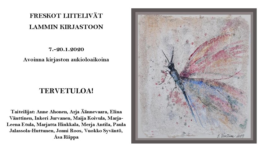 Tänään käynnistyi kevään freskoryhmä. Ensimmäiset työmme ovat parhaillaan ryhmänäyttelyssä Lammin kirjastossa. Jatkoin Seinäruusu-teeman merkeissä.