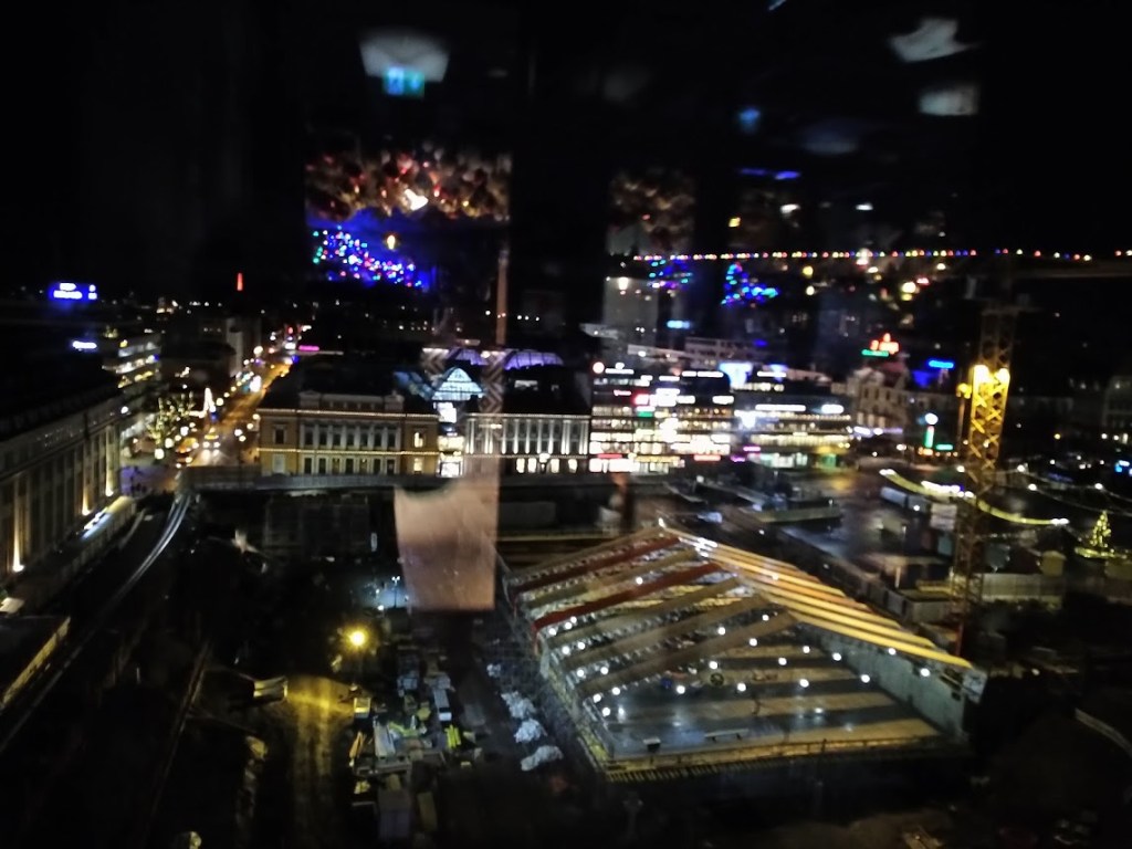Palasimme hotellille ja kävimme vielä ihailemassa Turun valoja hotellin ylimmän kerroksen näköalabaarista.